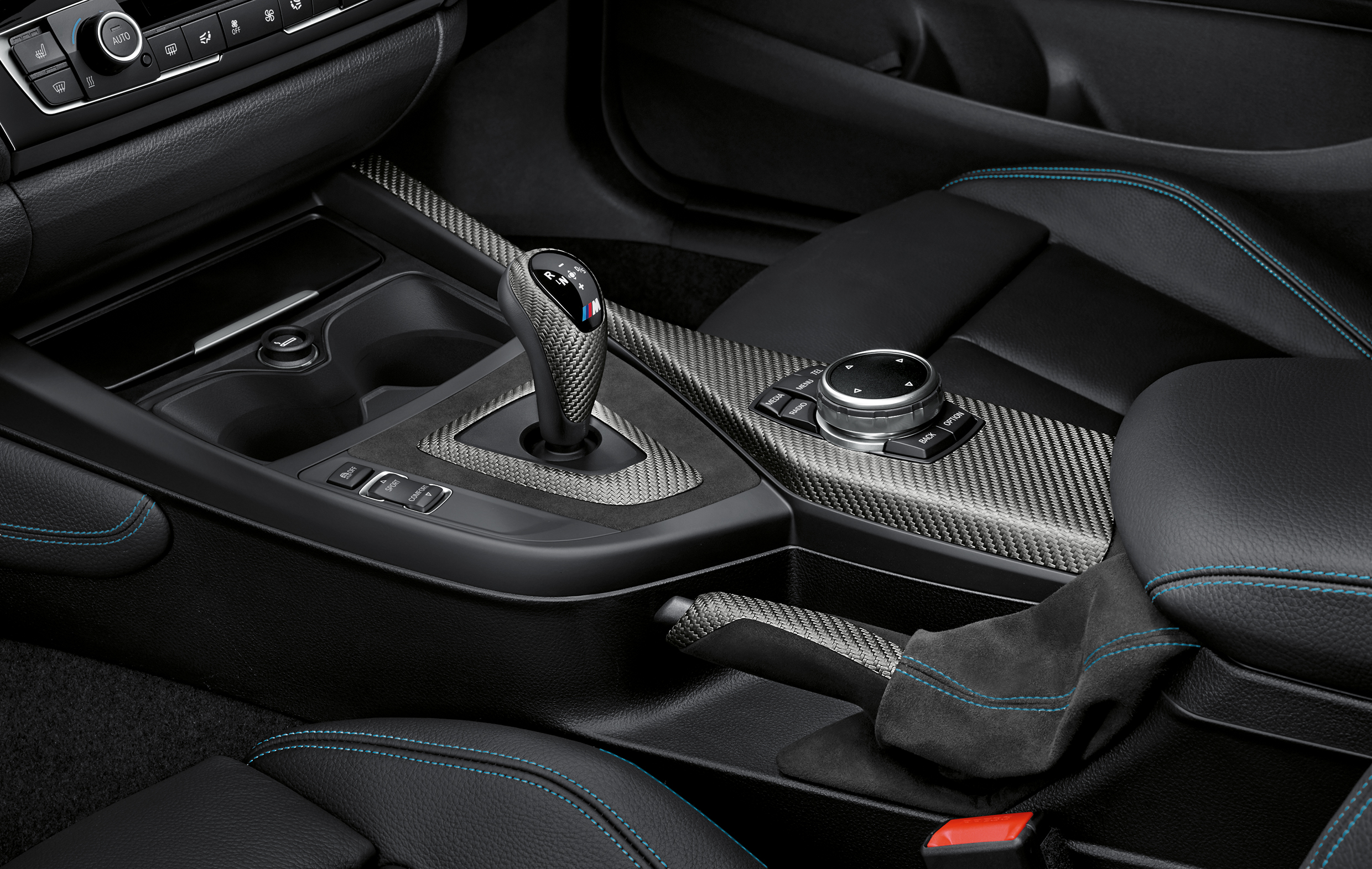 BMW M2 Coupé (F87), BMW M Performance Parts Interior Kit DCT with DCT cover selector lever carbon fiber, Cover Center Console Carbon Fiber, Carbon Fiber Handbrake Grip w/ Alcantara.