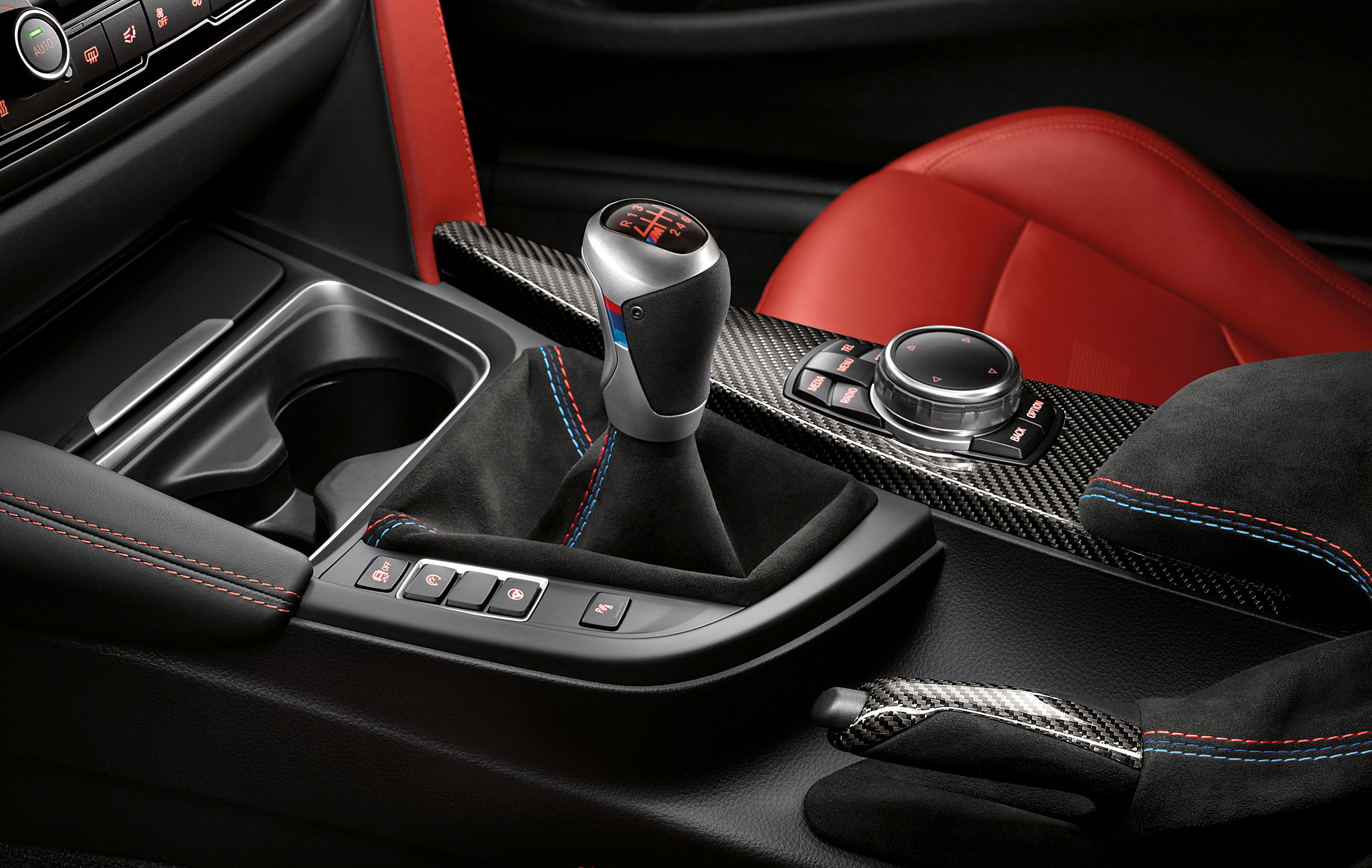 BMW M4 Coupé (F82), BMW M Performance shift knob pro carbon fiber with Alcantara gaiter.
