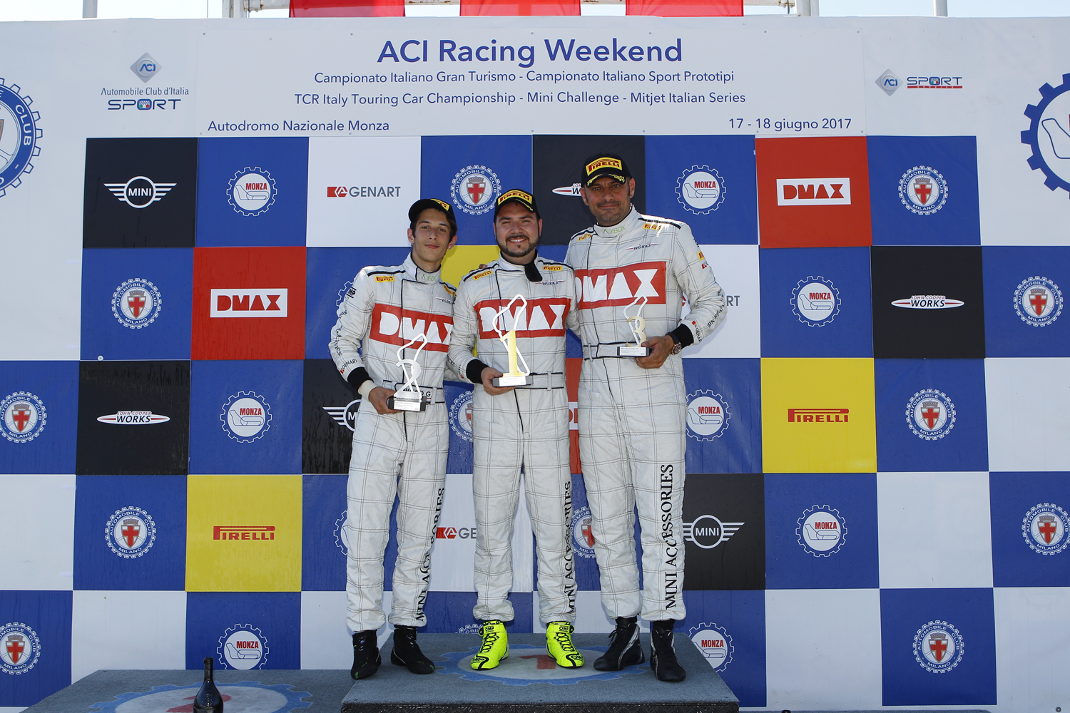 18/06/2017 MINI Challenge 2017 - MONZA - Race 2 Podium - MINI Challenge LITE - N. 88 Gabriele Giorgi (Autoè & Autoeur by CAAL Racing) winner of race 2; N. 90 Gianpiero Pindari-Gianluca Nigro (Reggio Motori by Dinamic Motorsport) 2nd; N. 71 Paolo Necchi (MINI Milano By Scuderia Angelo Caffi) 3rd. (06/2017).