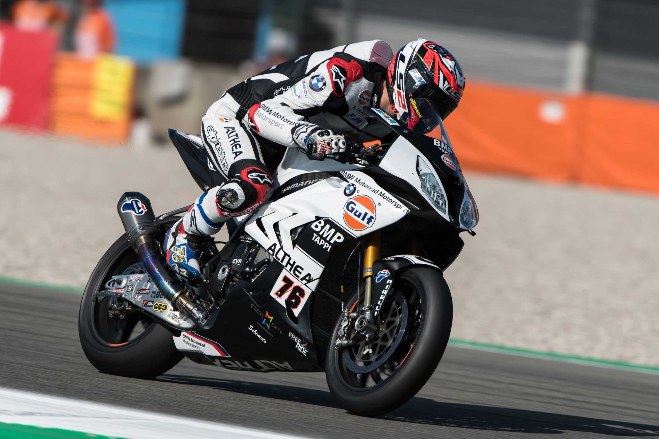 Assen (NED) WorldSBK 20th April 2018. Althea BMW Racing Team Rider Loris Baz #76 (FRA) riding the BMW S1000RR.