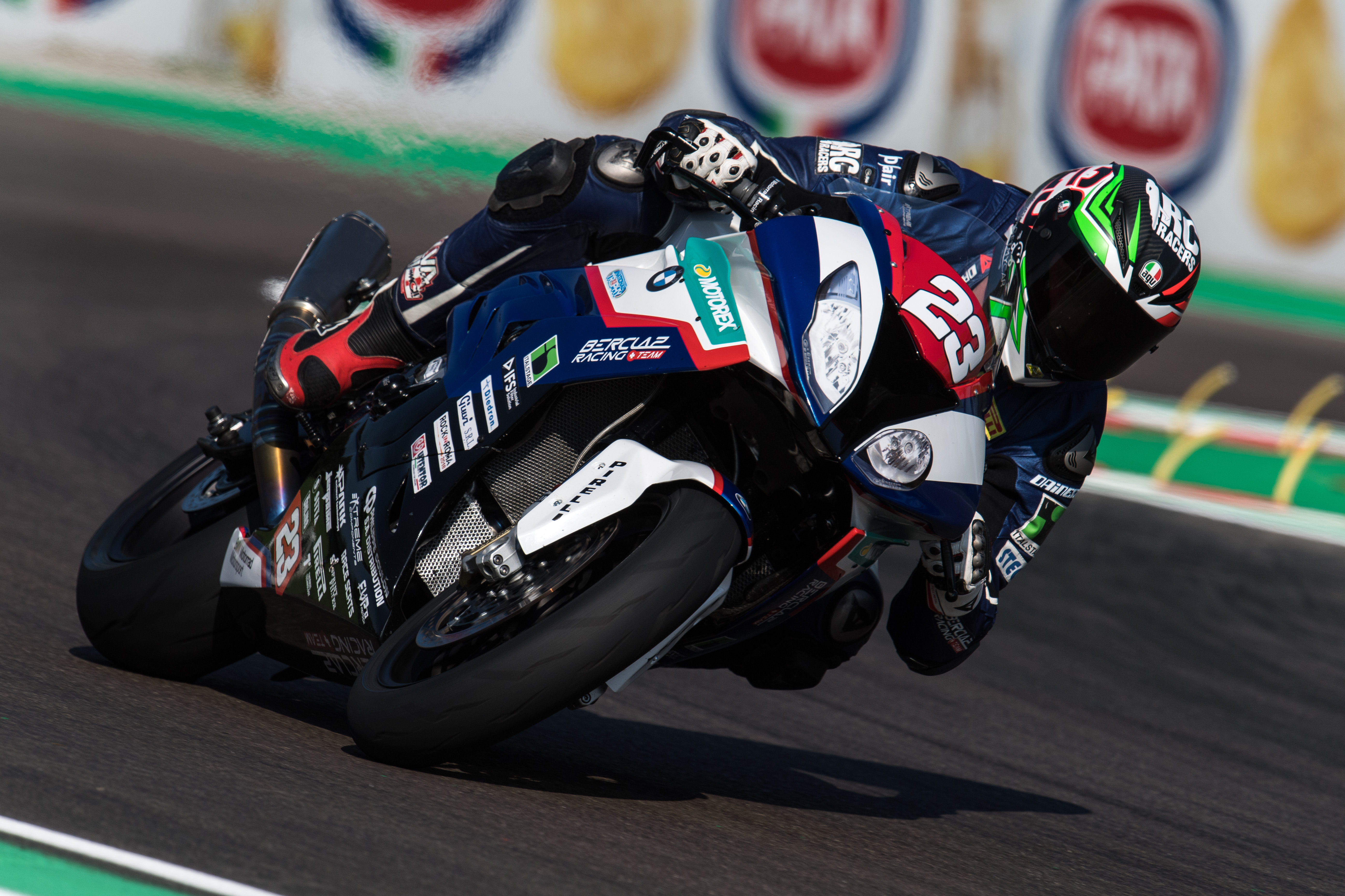 Imola (ITA) STK1000 12th May 2018. BMW Bercelaz Racing Team Rider Luca Salvadori #23 (ITA) riding the BMW S1000RR.