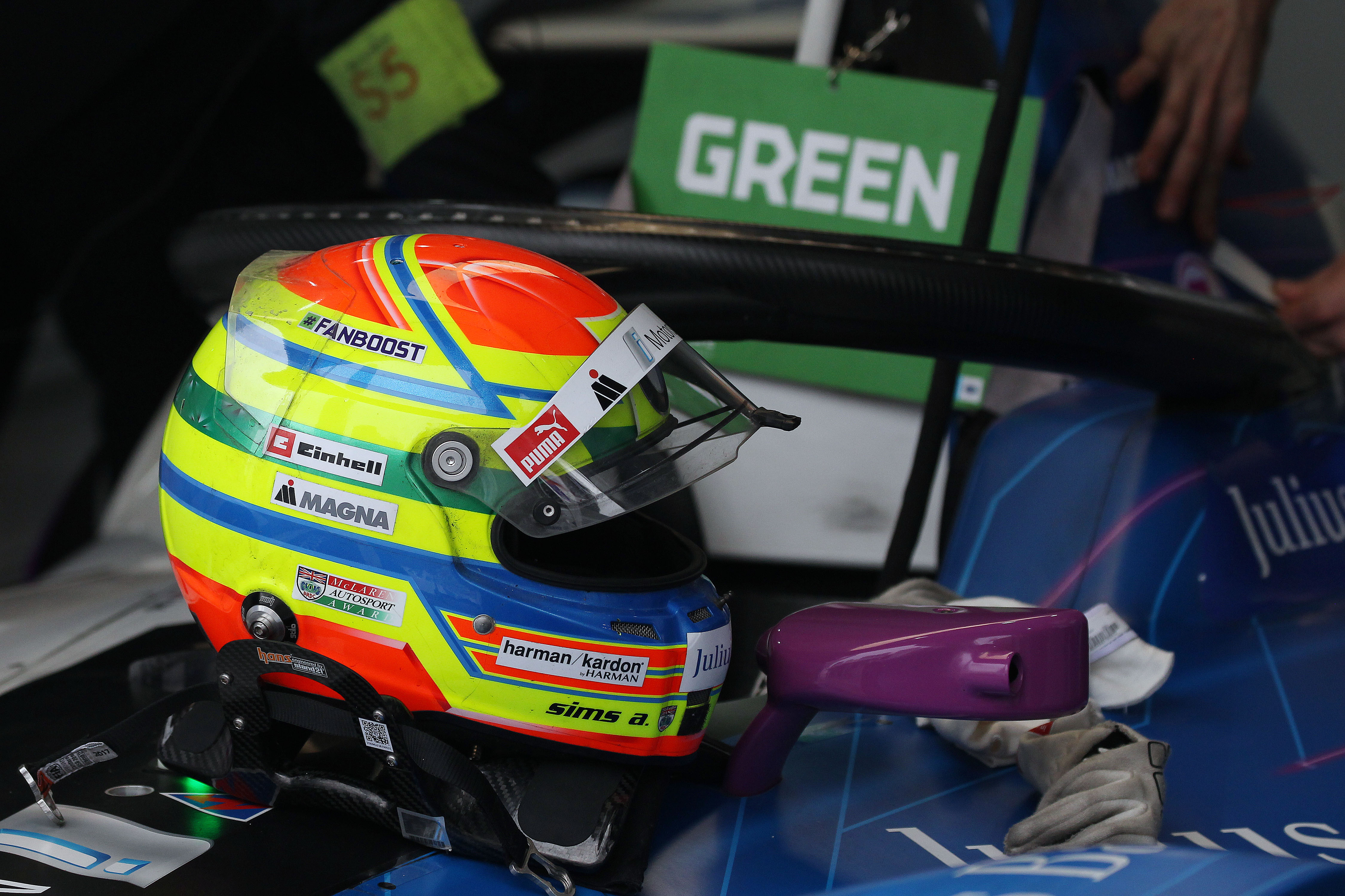 Hong Kong (CHN), 10th March 2019. ABB FIA Formula E Championship, Hong Kong E-Prix, BMW i Andretti Motorsport, Alexander Sims helmet.