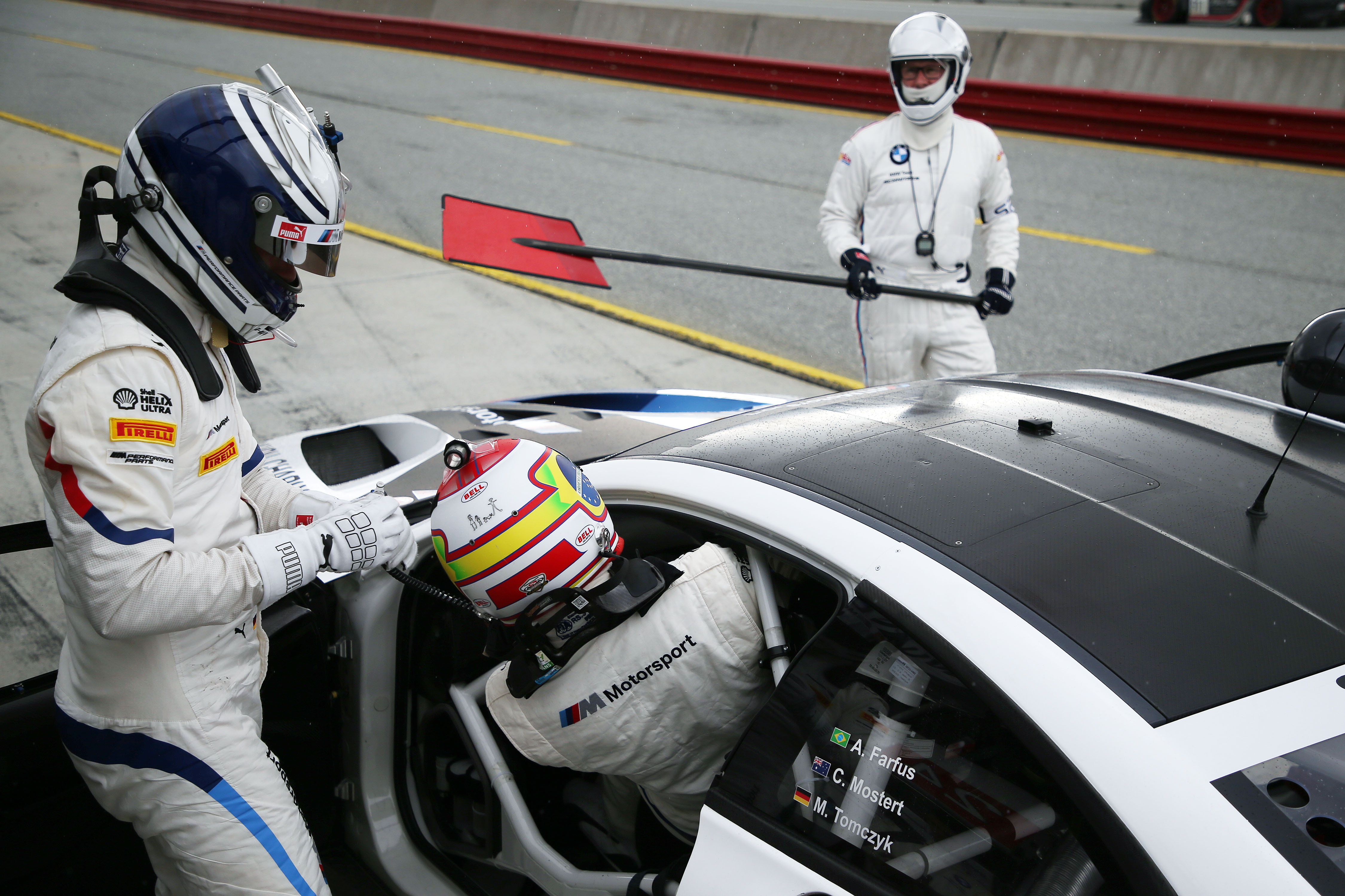 Laguna Seca (USA), 27th March, Intercontinental GT Challenge 2019, Testing, California 8 Hours, Martin Tomczyk (GER) and Augusto Farfus (BRA), driver change, BMW M6 GT3 #42, BMW Team Schnitzer, pit stop.