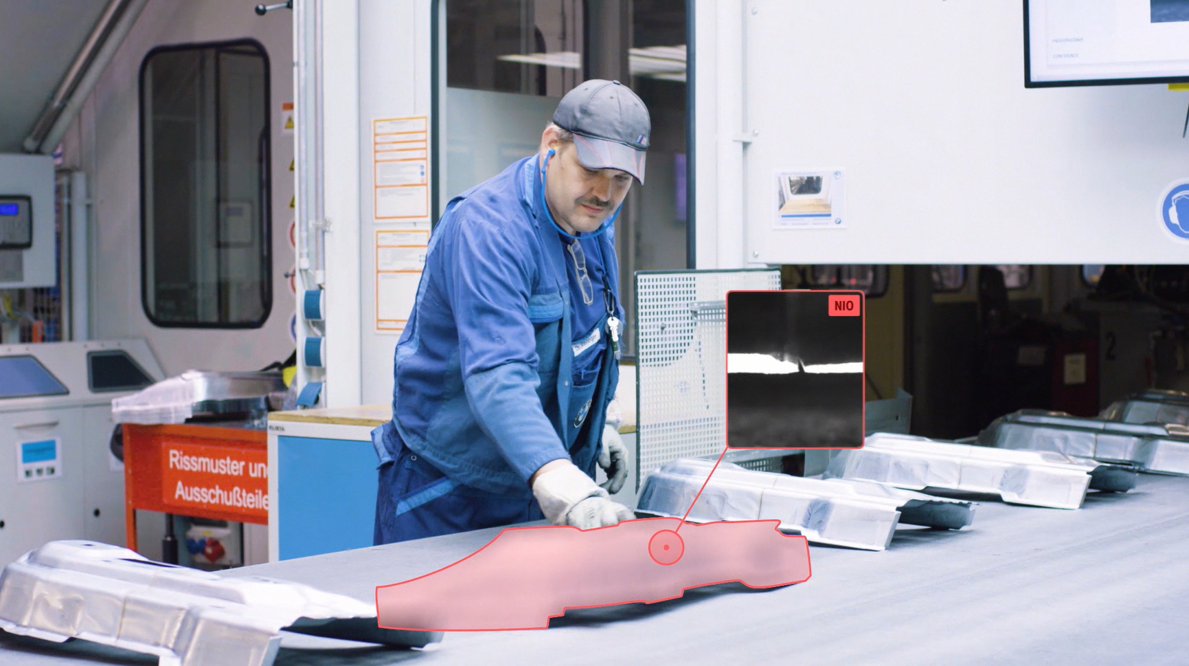KI supports employee to detect and remove a defective component (Symbolic illustration, BMW Group Plant Press Plant Dingolfing) (07/2019)