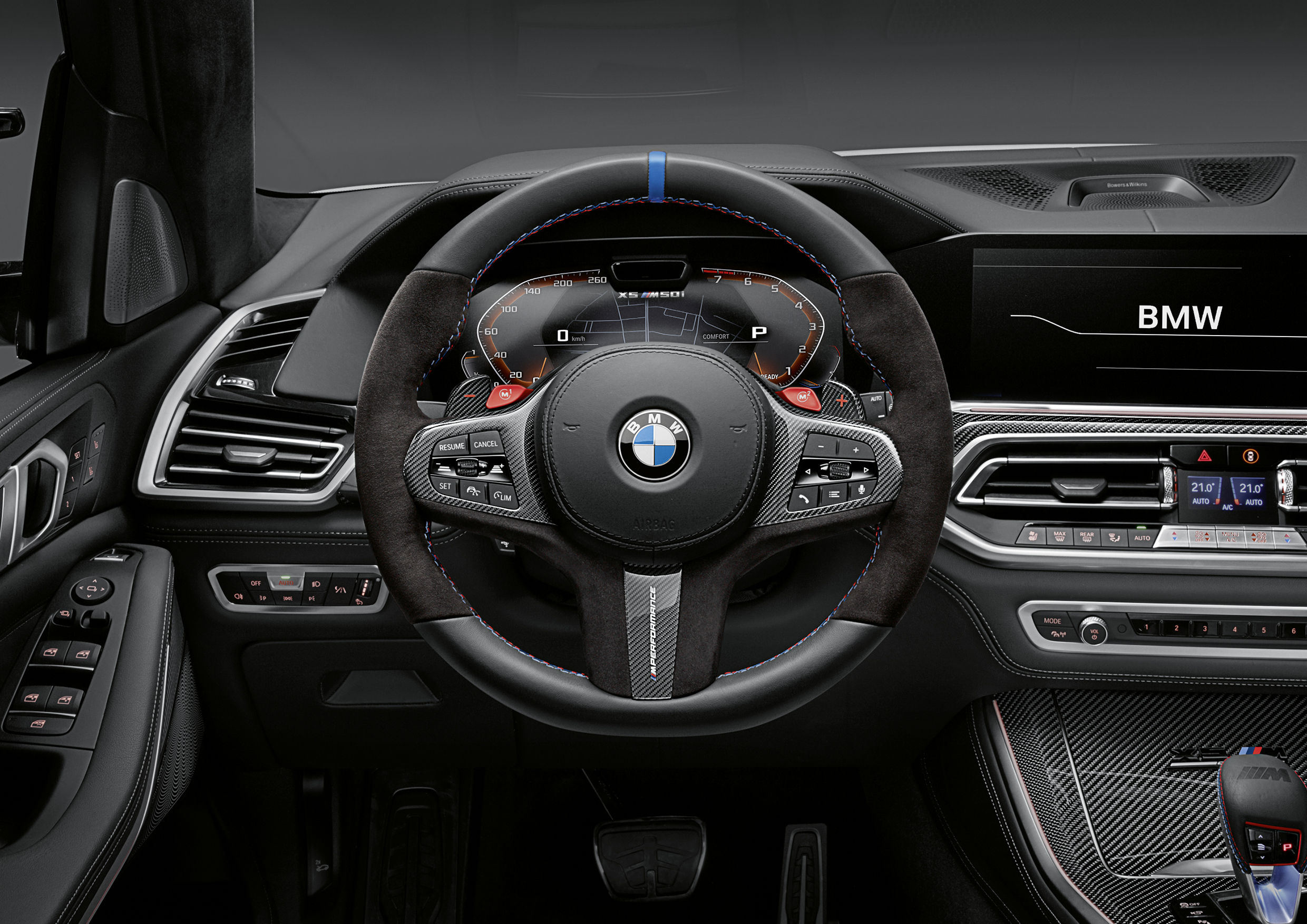 BMW X5 M, M Performance steering wheel, M Performance shift paddles in carbon fibre, M Performance steering wheel cover in carbon fibre/Alcantara ...