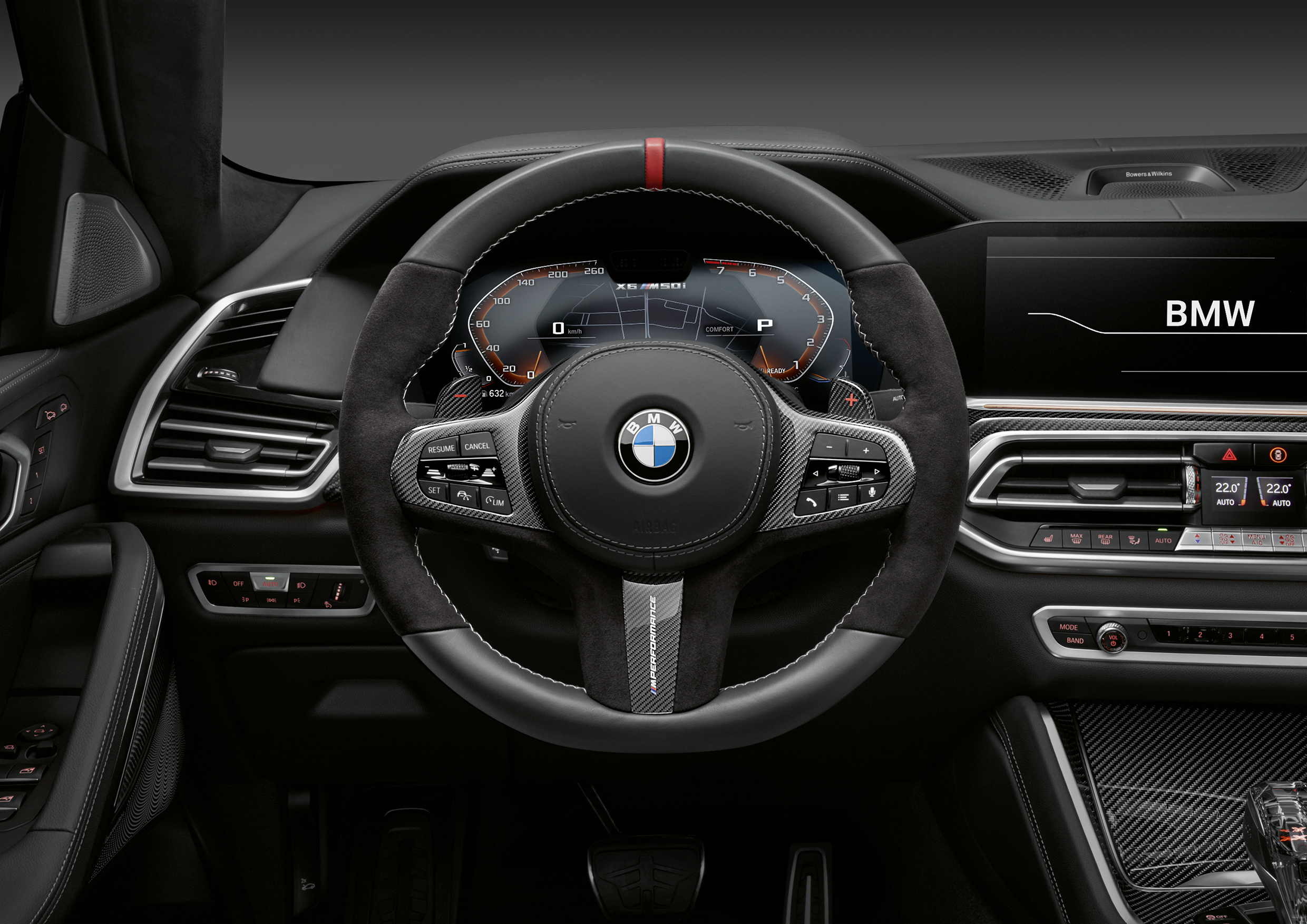 BMW X6, M Performance steering wheel, M Performance shift paddles in carbon fibre, M Performance steering wheel cover in carbon fibre/Alcantara ...