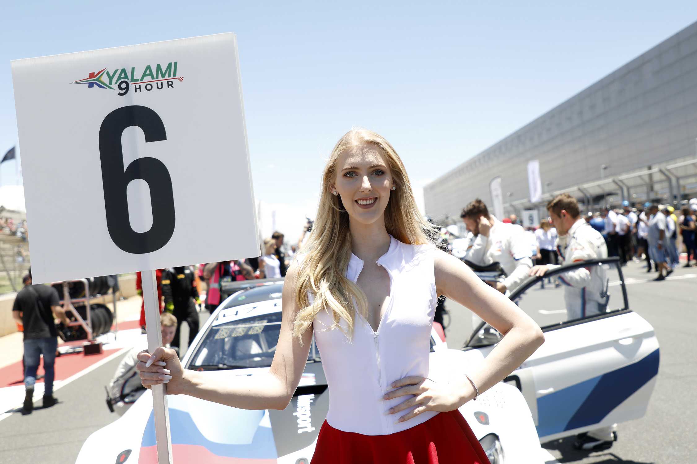 Kyalami (RSA), 23rd November 2019. BMW M Motorsport, 9h of Kyalami, Grid girl, Augusto Farfus (BRA), Martin Tomczyk (GER), Sheldon van der Linde (RSA), BMW M6 GT3 #42, BMW Team Schnitzer.