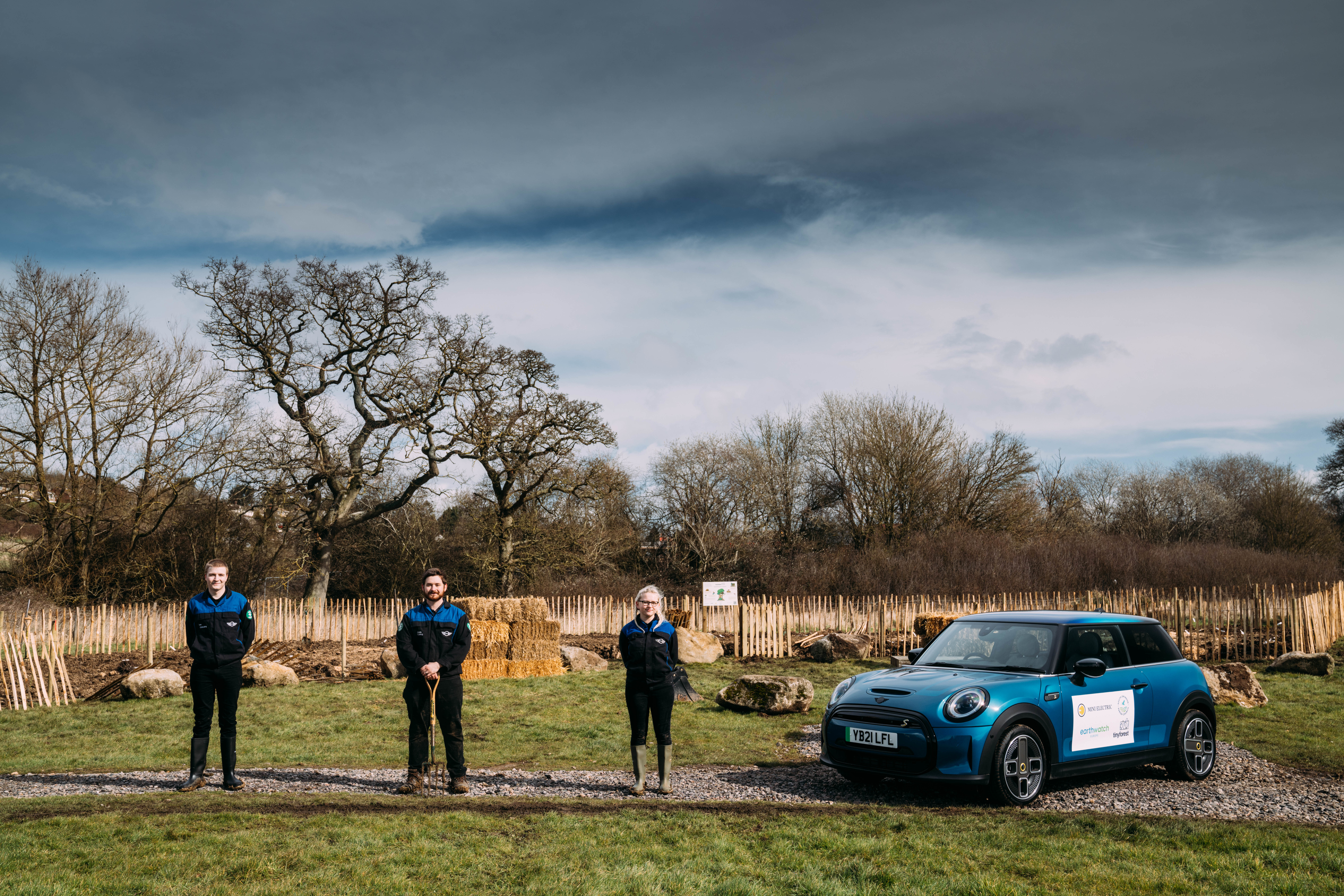 MINI boost for Tiny Forest initiative BMW Group Swindon apprentices Tia Hollis , Cody Tepas and Zac Couldry