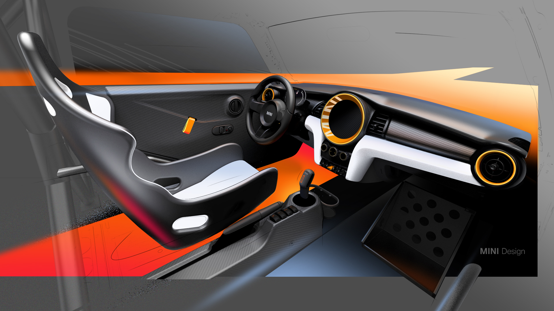 Der MINI Electric Pacesetter inspired by JCW - Designsketch (03/21).