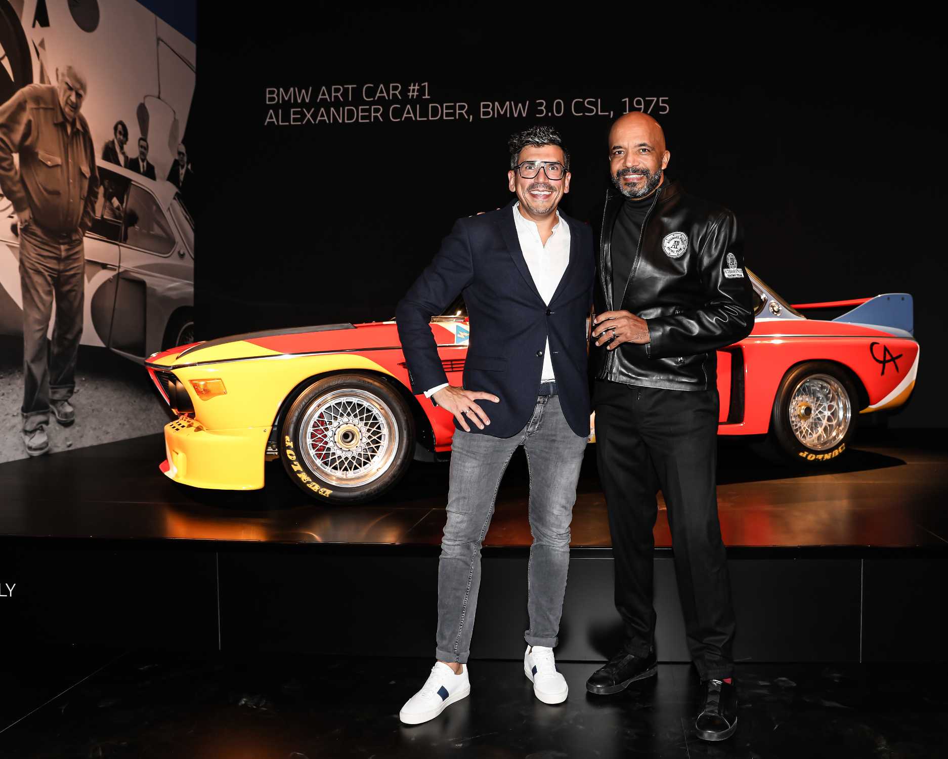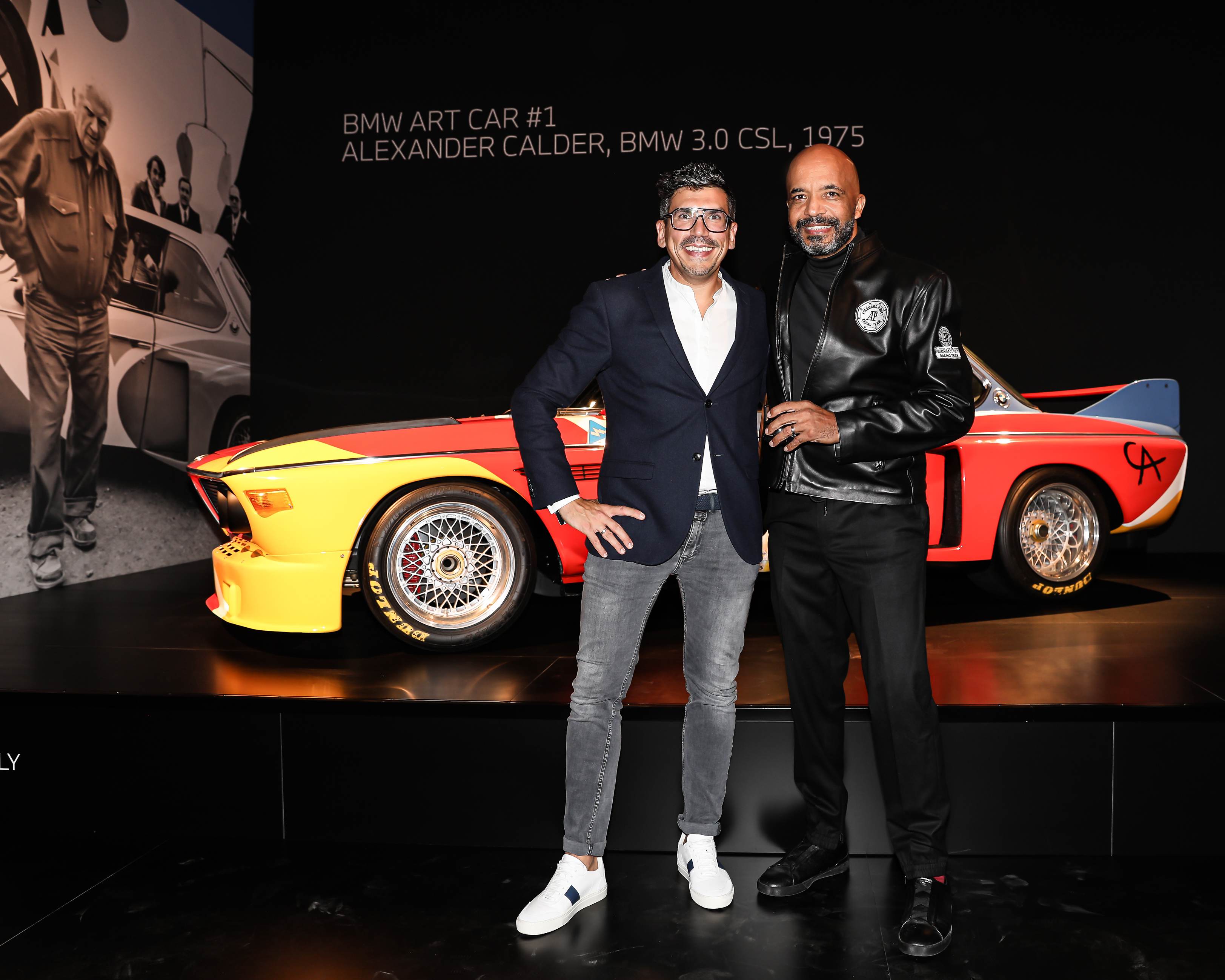 Celebrating 50 Years of BMW Group Cultural Engagement at Kunstmuseum Basel on September 21, 2021: Stefan Ponikva (Vice President Brand Communication and Brand Experience at BMW Group) and Olivier Audemars (Vice Chairman of the Board of Directors, Audemars Piguet) in front of the BMW Art Car by Alexander Calder, BMW 3.0 CSL, 1975. © Sara Barth and BMW AG (09/2021)