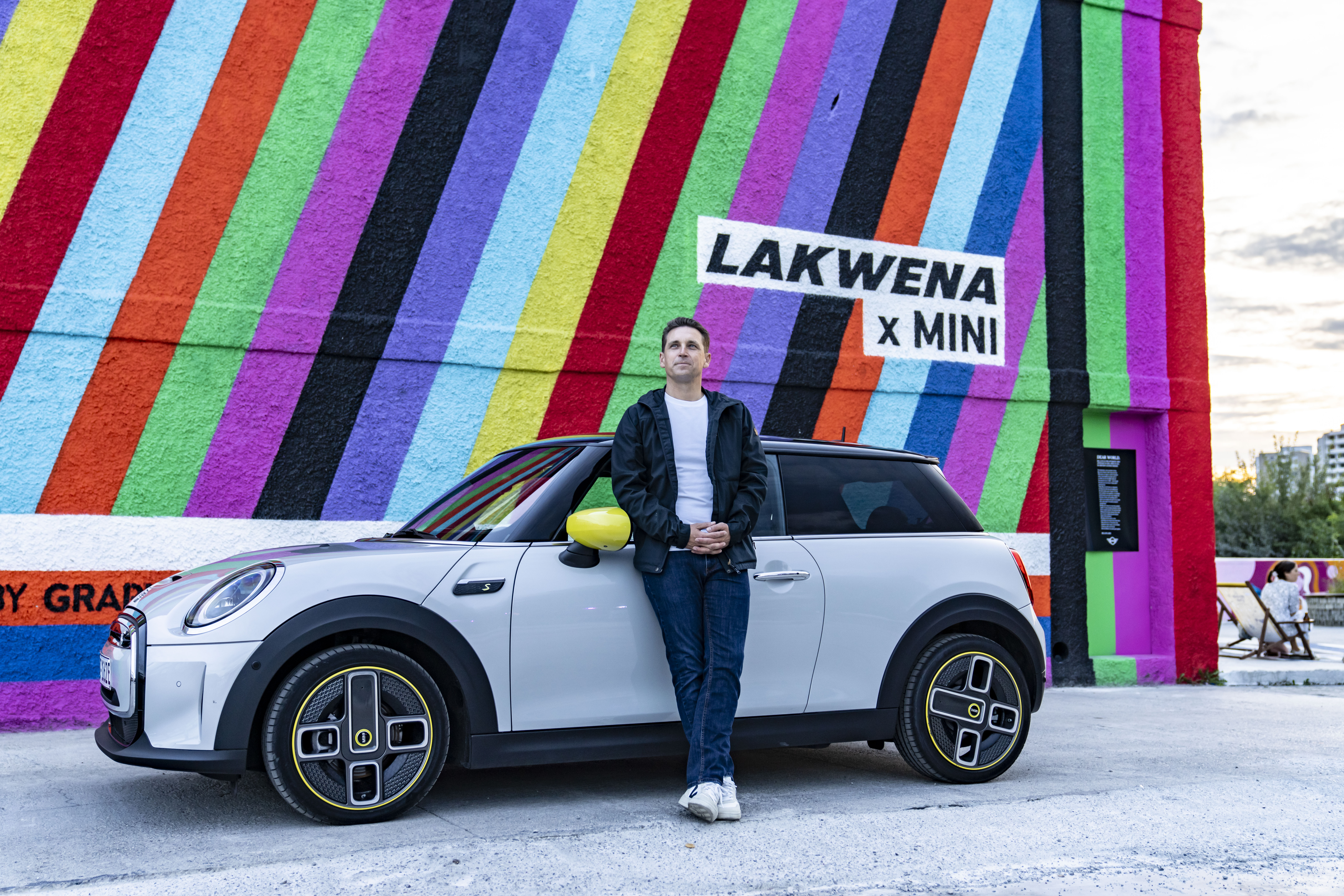 Bernd Körber, Head of MINI and a MINI Cooper SE at Sugar Mountain, Munich. (11/2021)