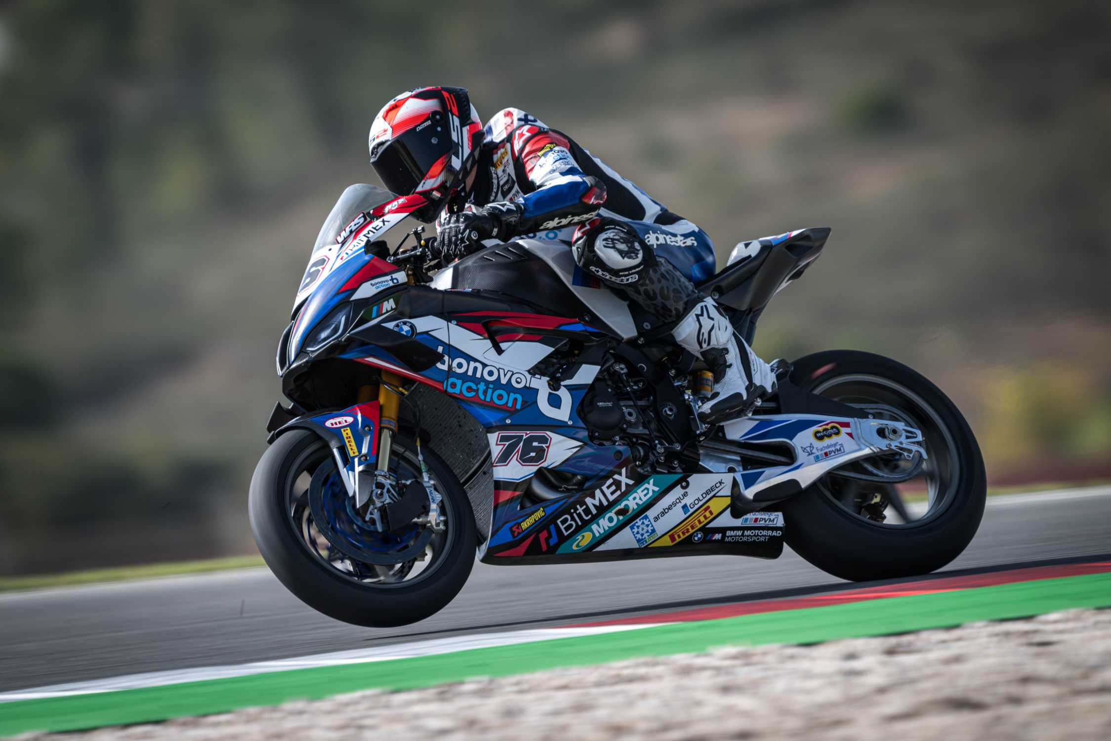 Portimao (POR), 7th October 2022. FIM Superbike World Championship BMW Motorrad Motorsport. Bonovo MGM Racing, #76 BMW M 1000 RR, Loris Baz (FRA).