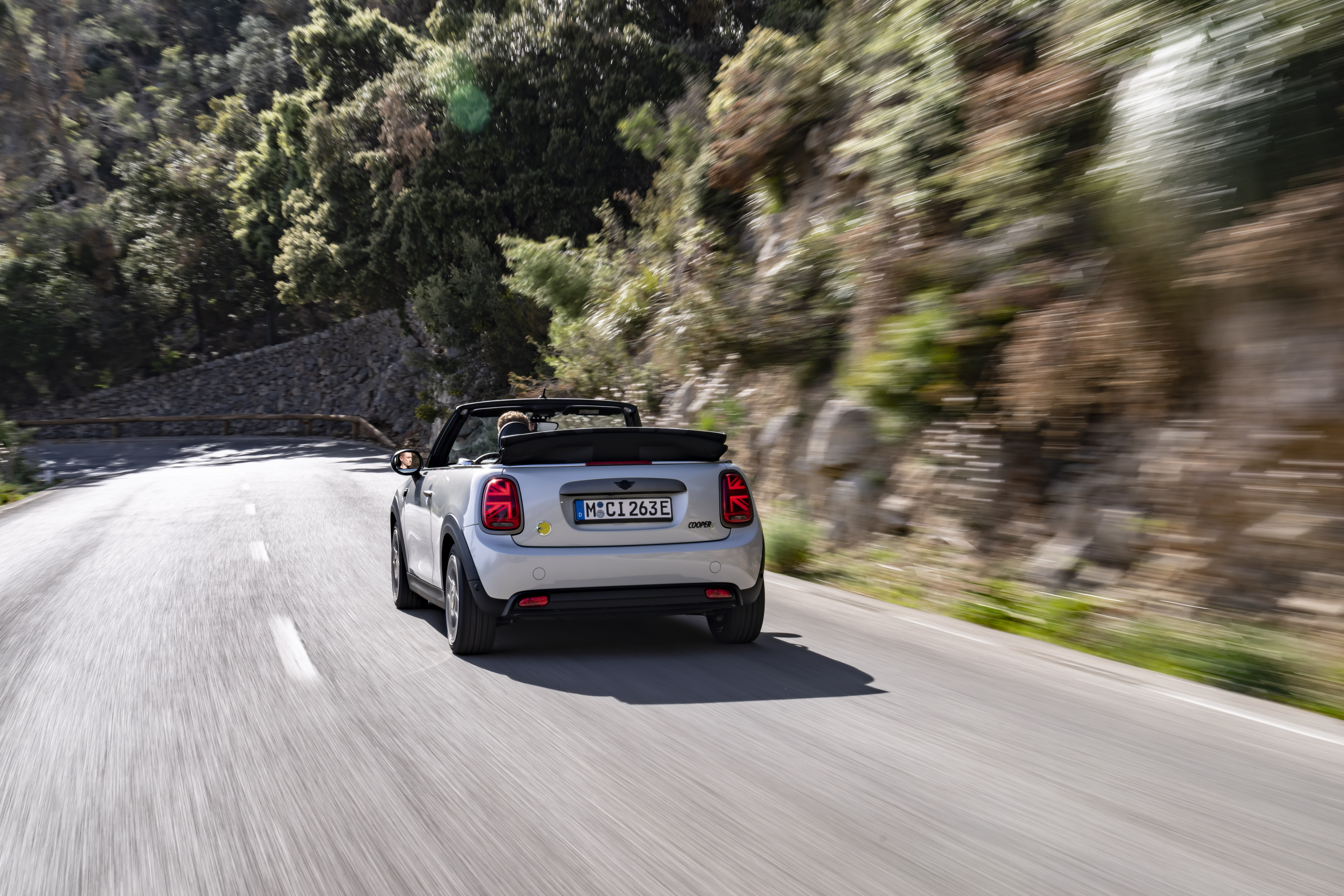 MINI Cooper SE Convertible (combined power consumption: 17.2 (WLTP) kWh/100 km; combined CO2 emissions: 0 g/km).