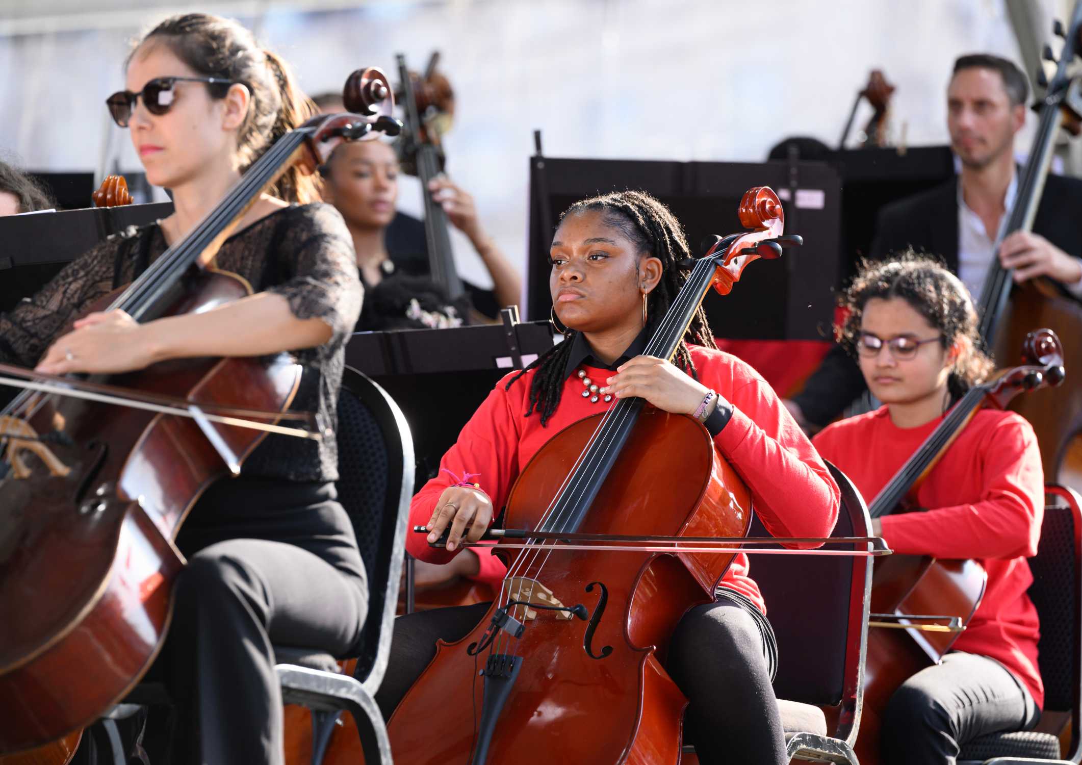 BMW invites to BMW Classics, 15 June 2025 on Trafalgar Square in London. Open-air concert of the London Symphony Orchestra. Musician of the LSO Discovery Programme. Photo: Doug Peters (06/2025)