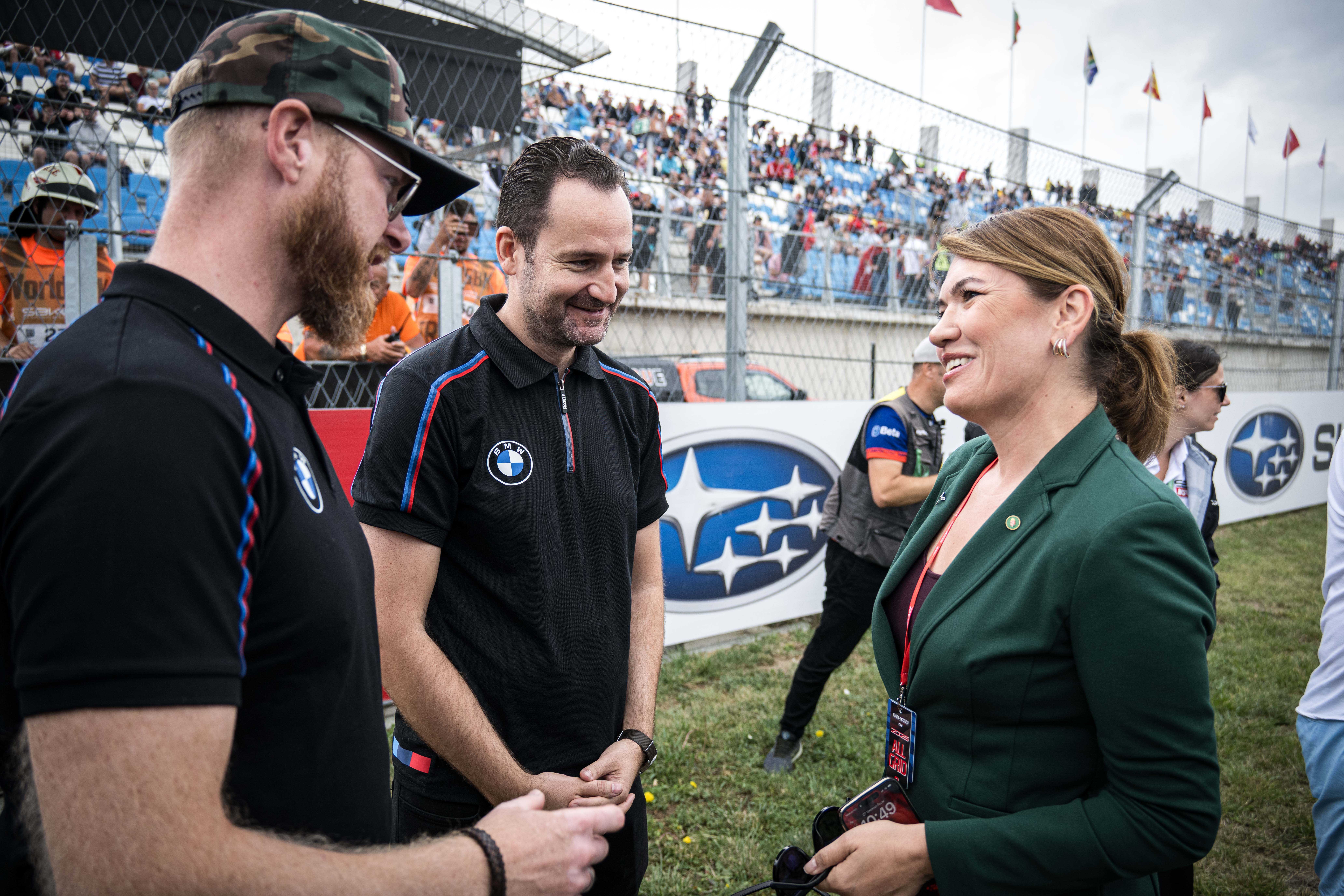 25th - 27th July 2025. Balaton Park (HUN). FIM Superbike World Championship ROKiT BMW Motorrad WorldSBK Team, BMW M 1000 RR, Sven Blusch Head of BMW Motorrad Motorsport with Gülsen Karanis Eksioglu, Turkish Ambassador in Hungary