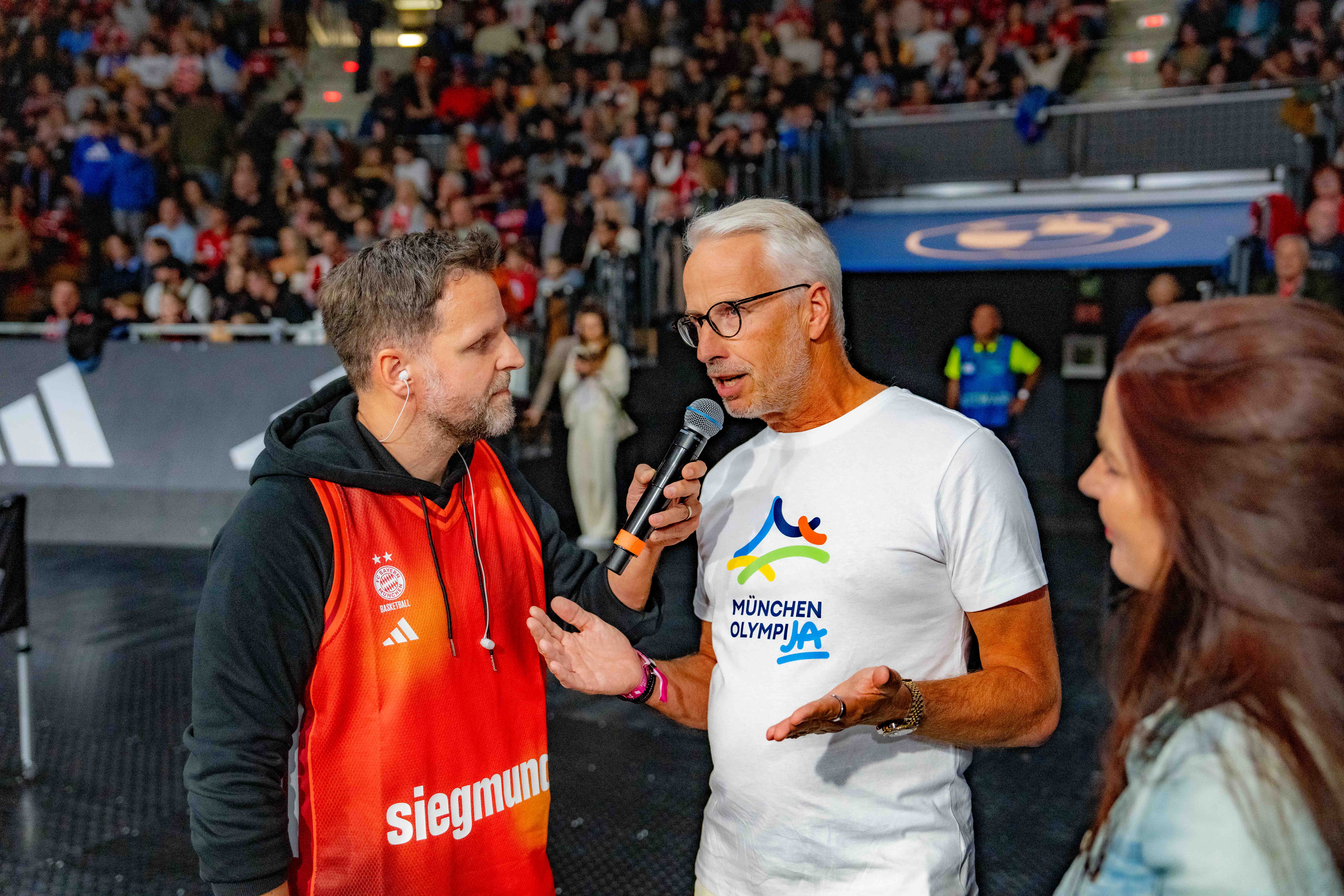 FC Bayern Basketball - Science City Jena. Bernd Döpke (Head of BMW Munich), Mara Bertling (founder and managing director of DEIN MÜNCHEN)