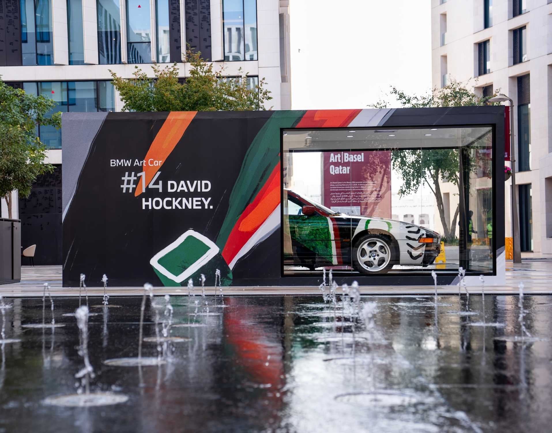 Presentation of BMW Art Car #14 by David Hockney (1995) at Sahat Wadi Msheireb Plaza on the occasion of Art Basel Qatar 2026. Photo: Alfardan ...