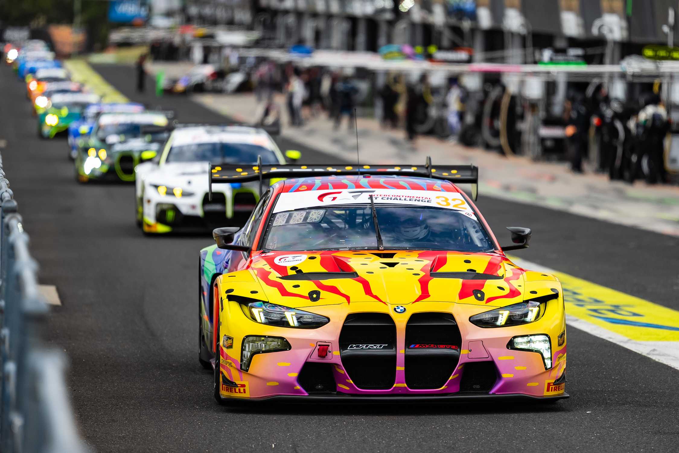 Bathurst (AUS), 11-15 February 2026. Intercontinental GT Challenge, IGTC, Bathurst 12 Hour, Mount Panorama Circuit, Team WRT, #32 BMW M4 GT3 EVO, Ken Done, 1989 BMW M3 Art Car tribute, livery, design, Kelvin van der Linde, Jordan Pepper, Charles Weerts.