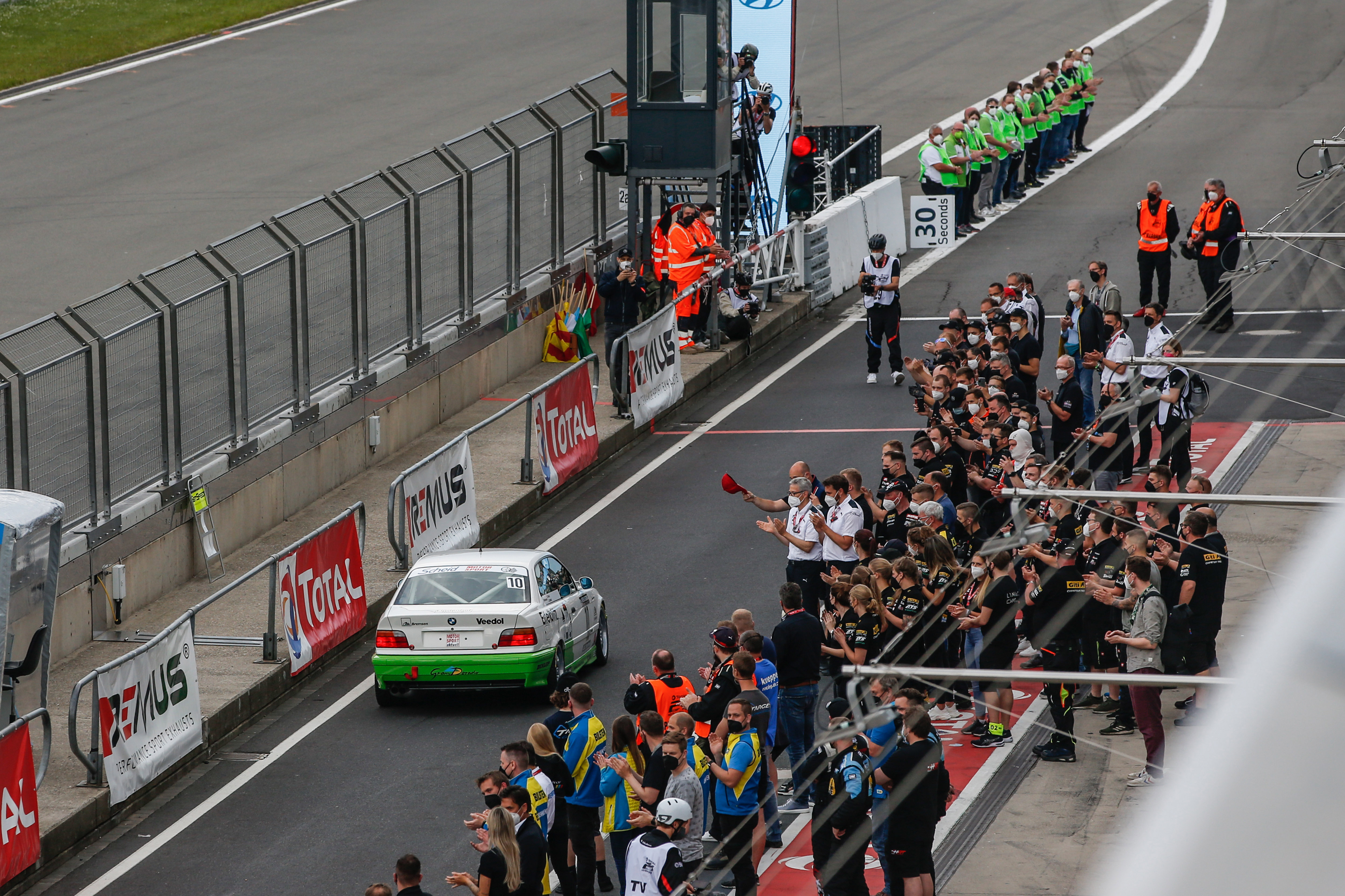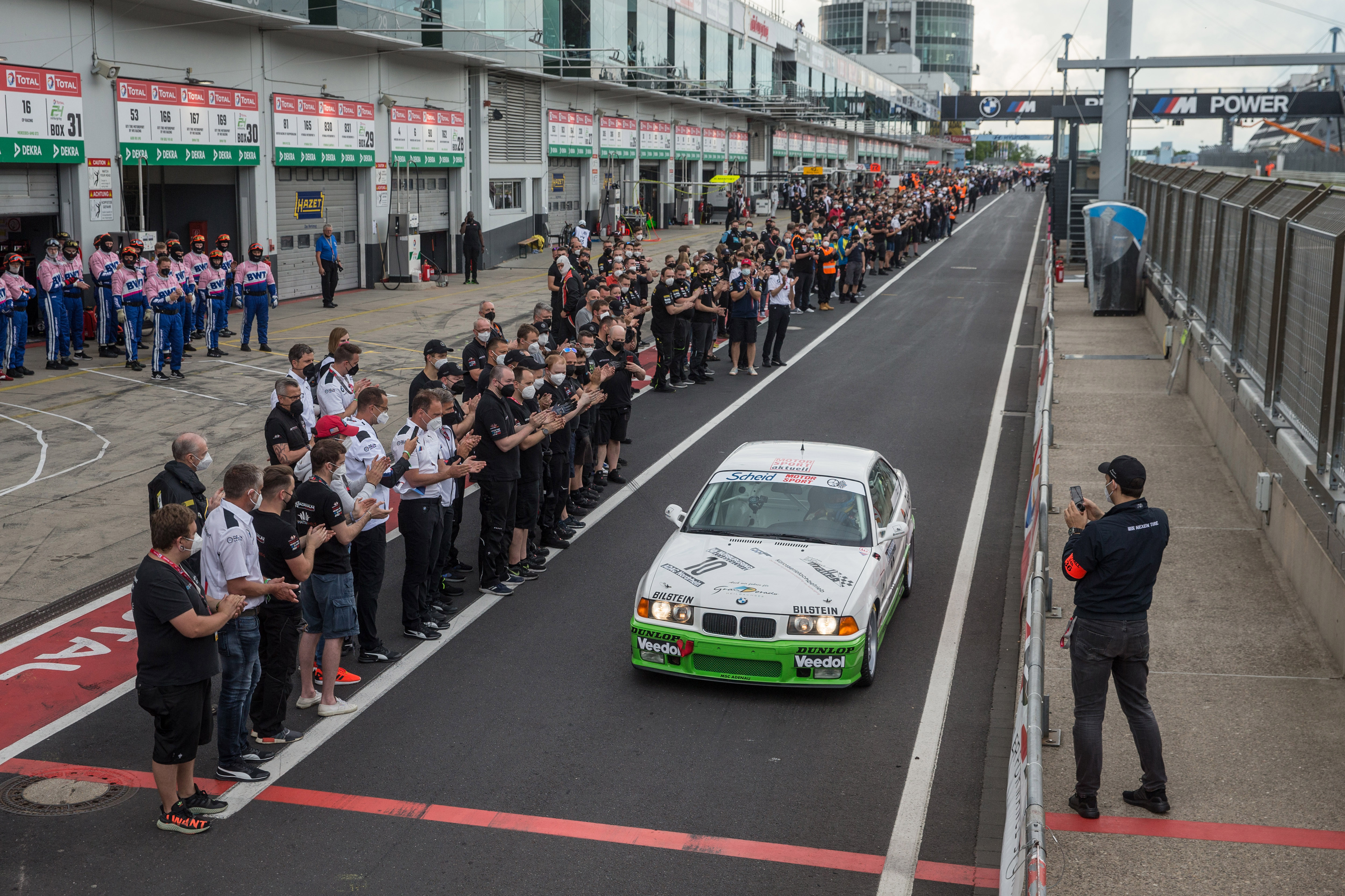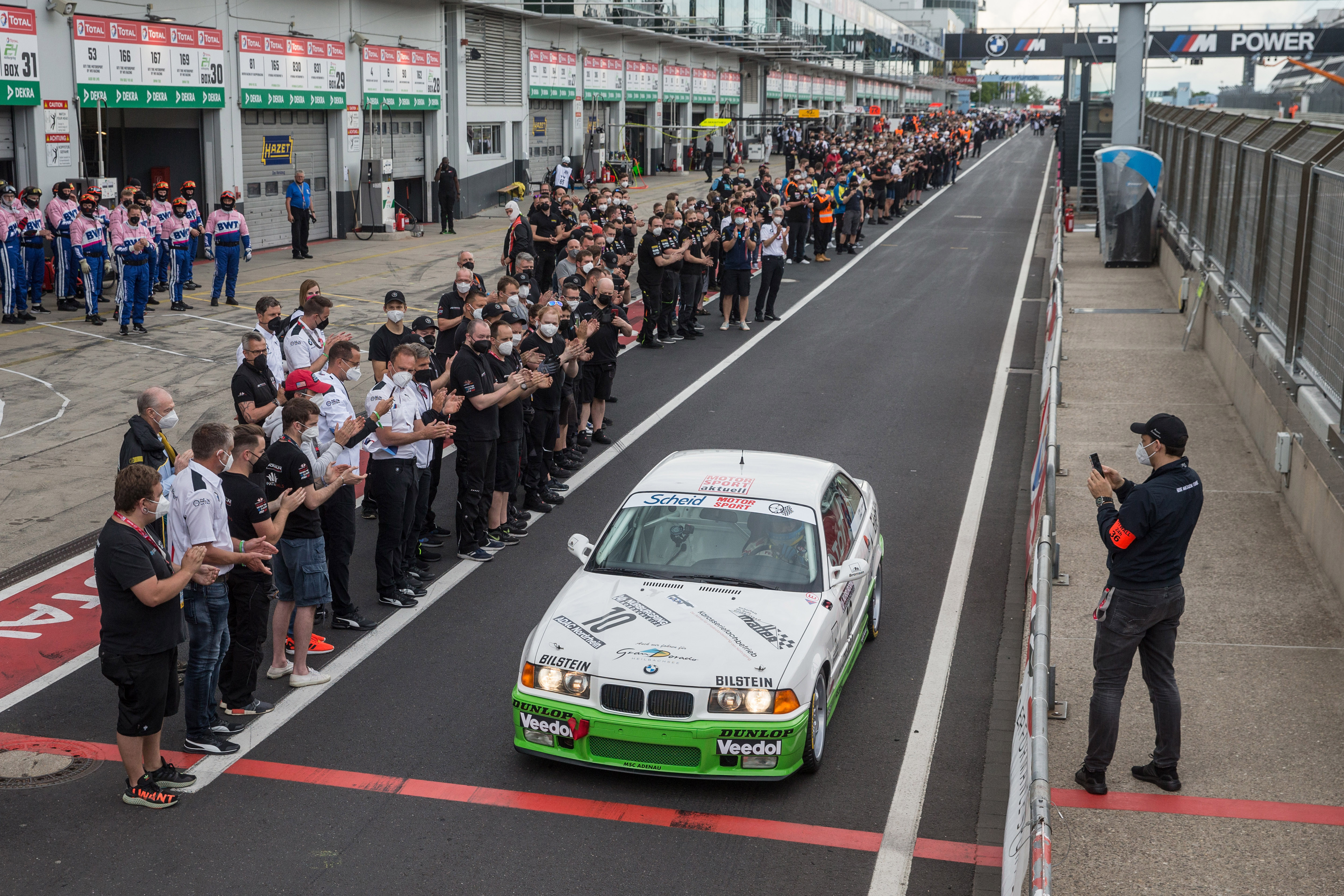 Nürburgring (GER), 3rd-6th June 2021: 24h Nürburgring, BMW M3 "Eifelblitz", Sabine Schmitz, Johannes Scheid Lap of honour