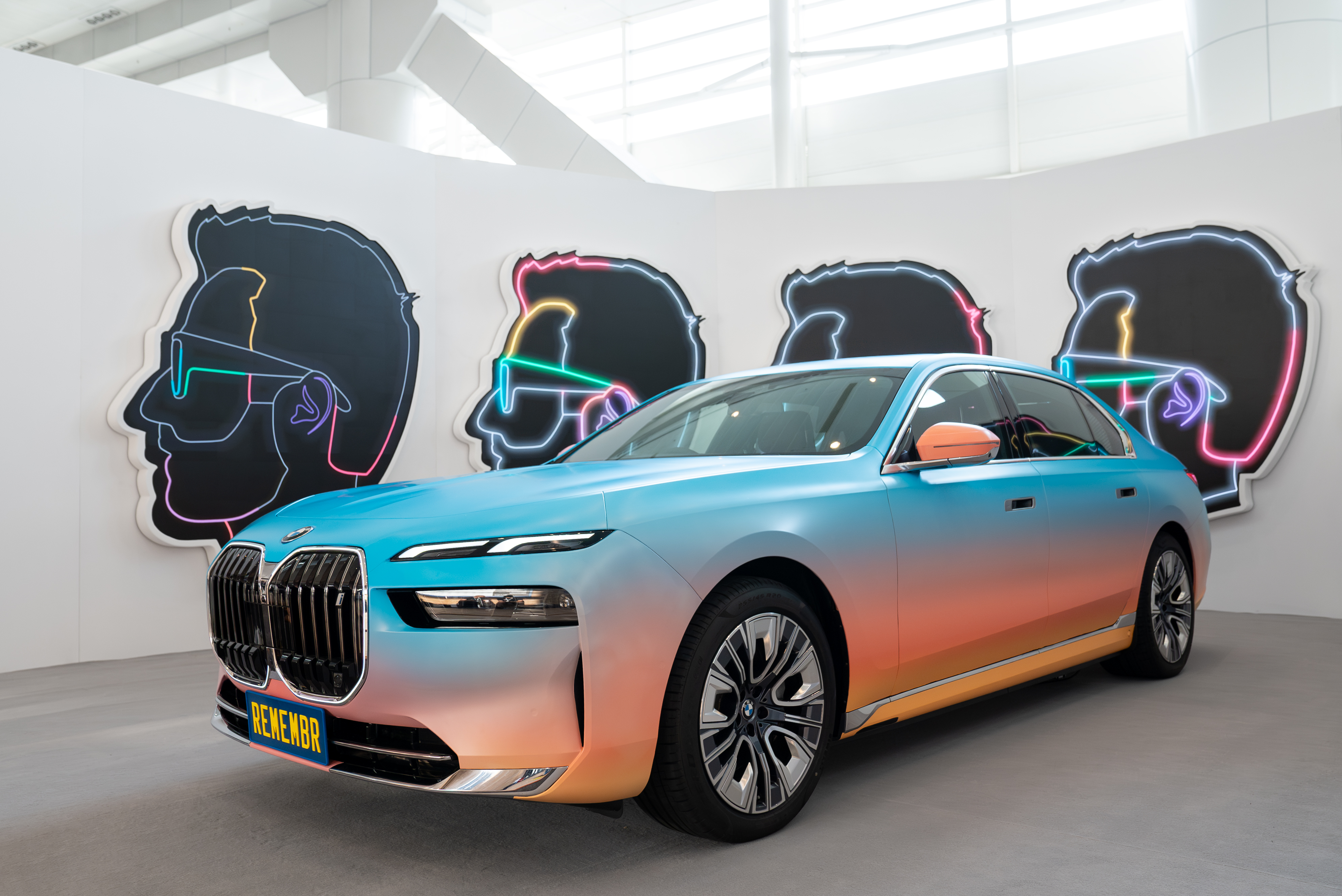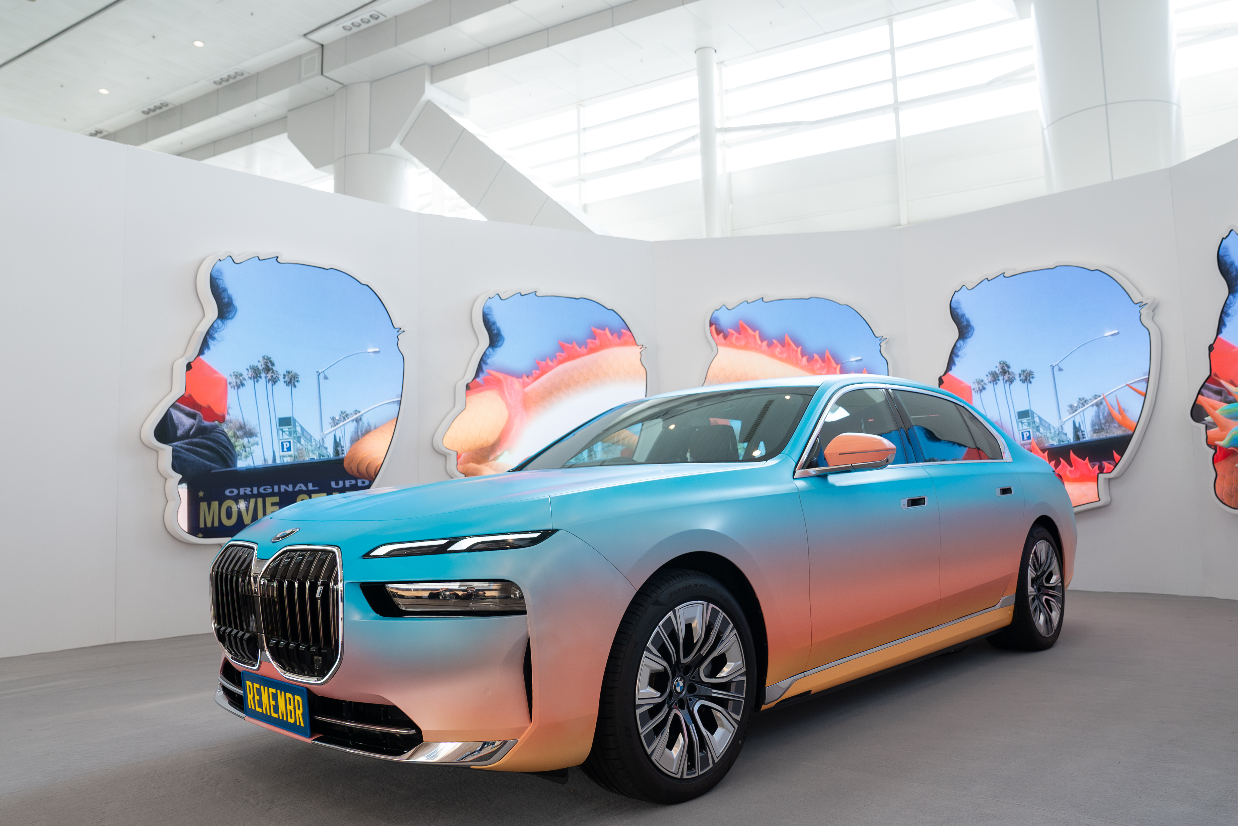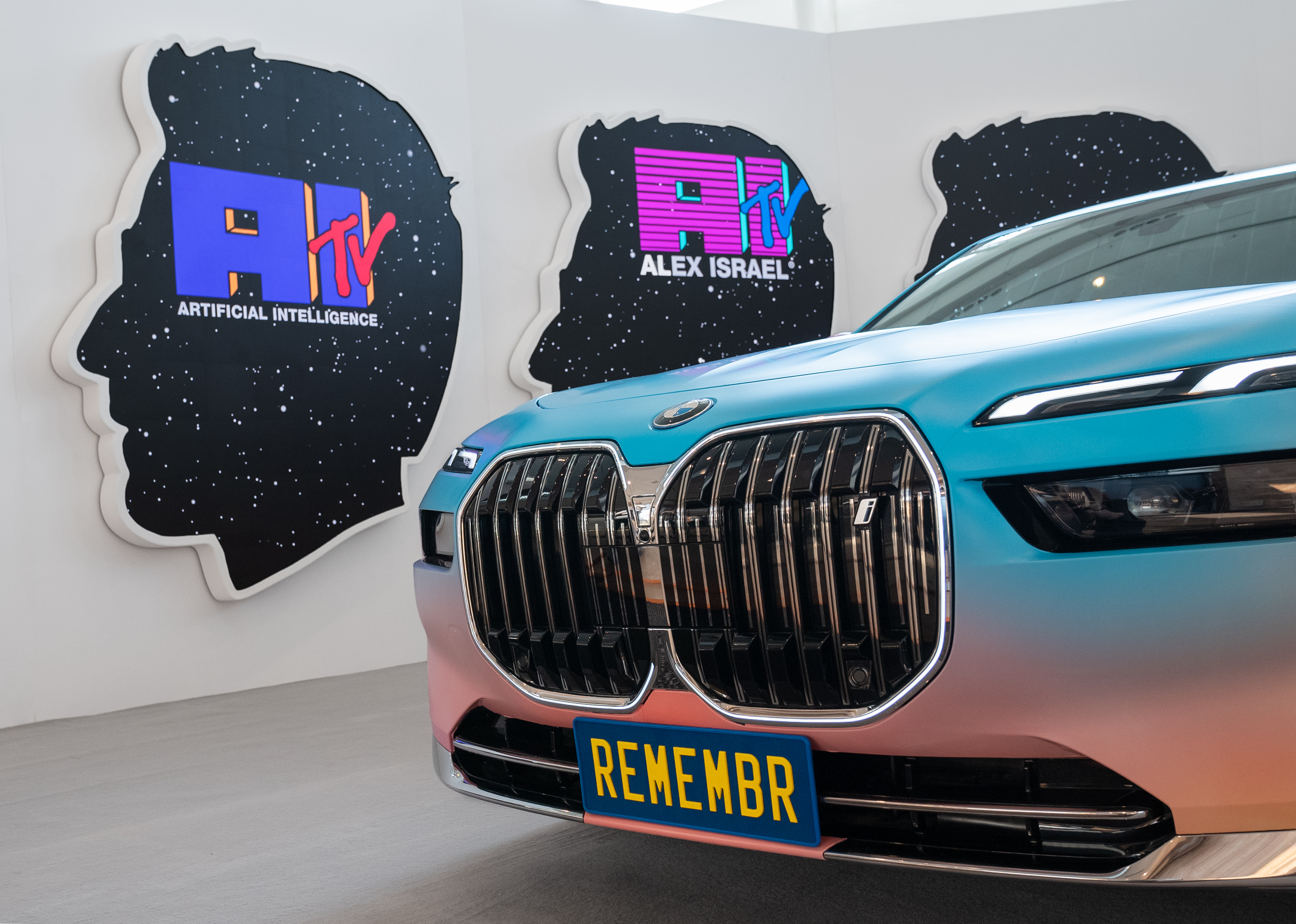 The all-electric BMW i7, inspiration for Alex Israel's AI video installation REMEMBR at Art Basel in Hong Kong 2024. Photo: Lucy Emms (03/2024)