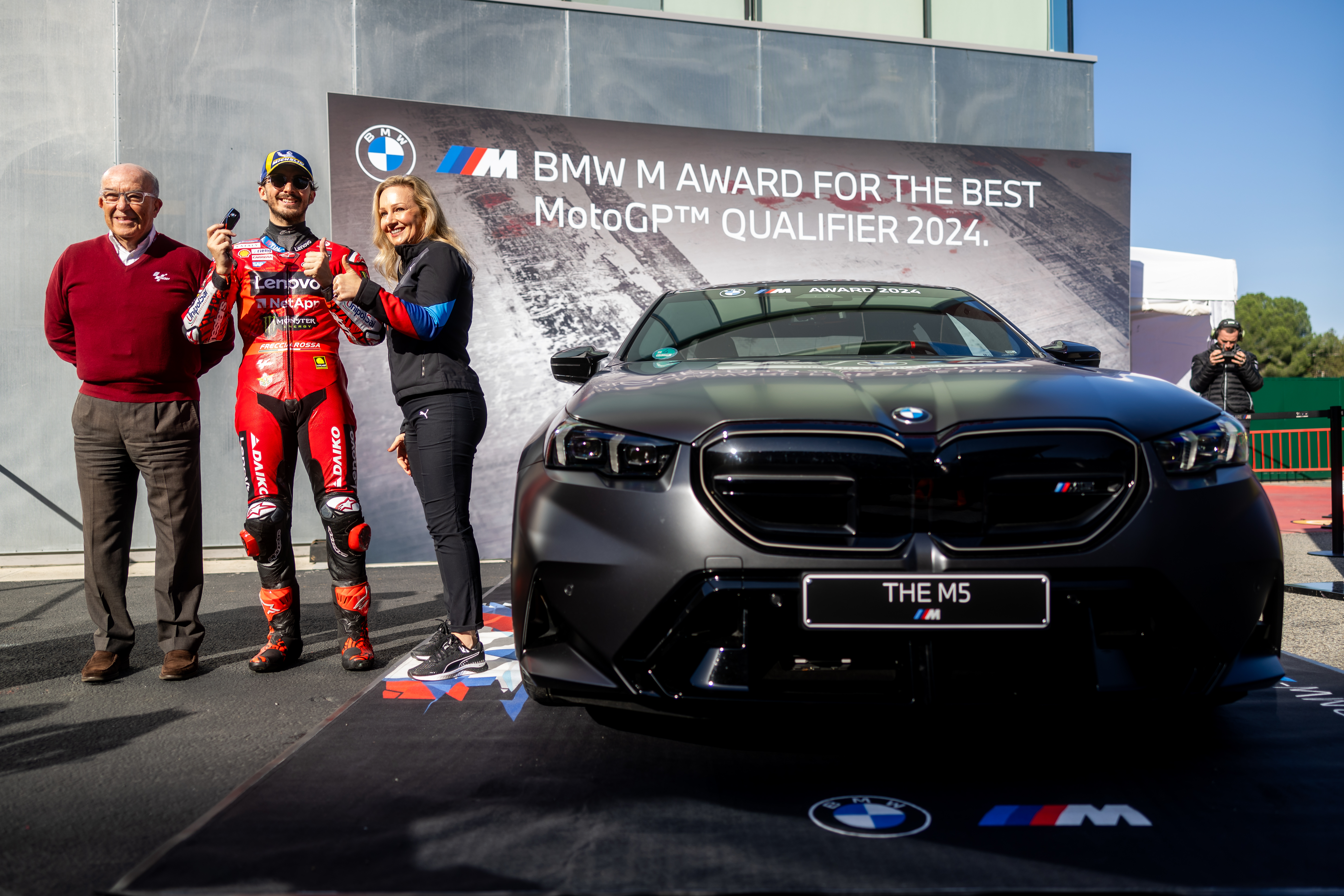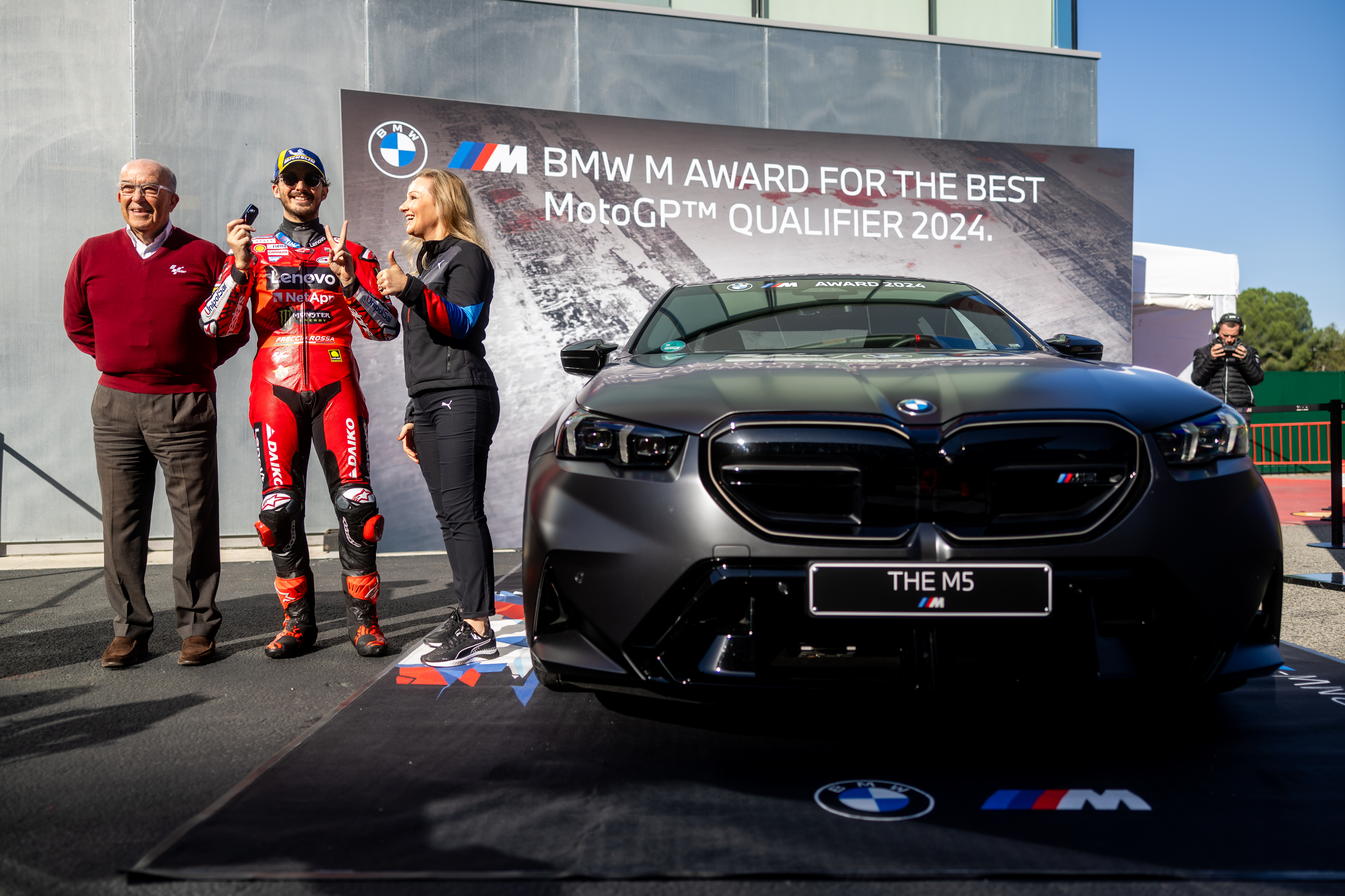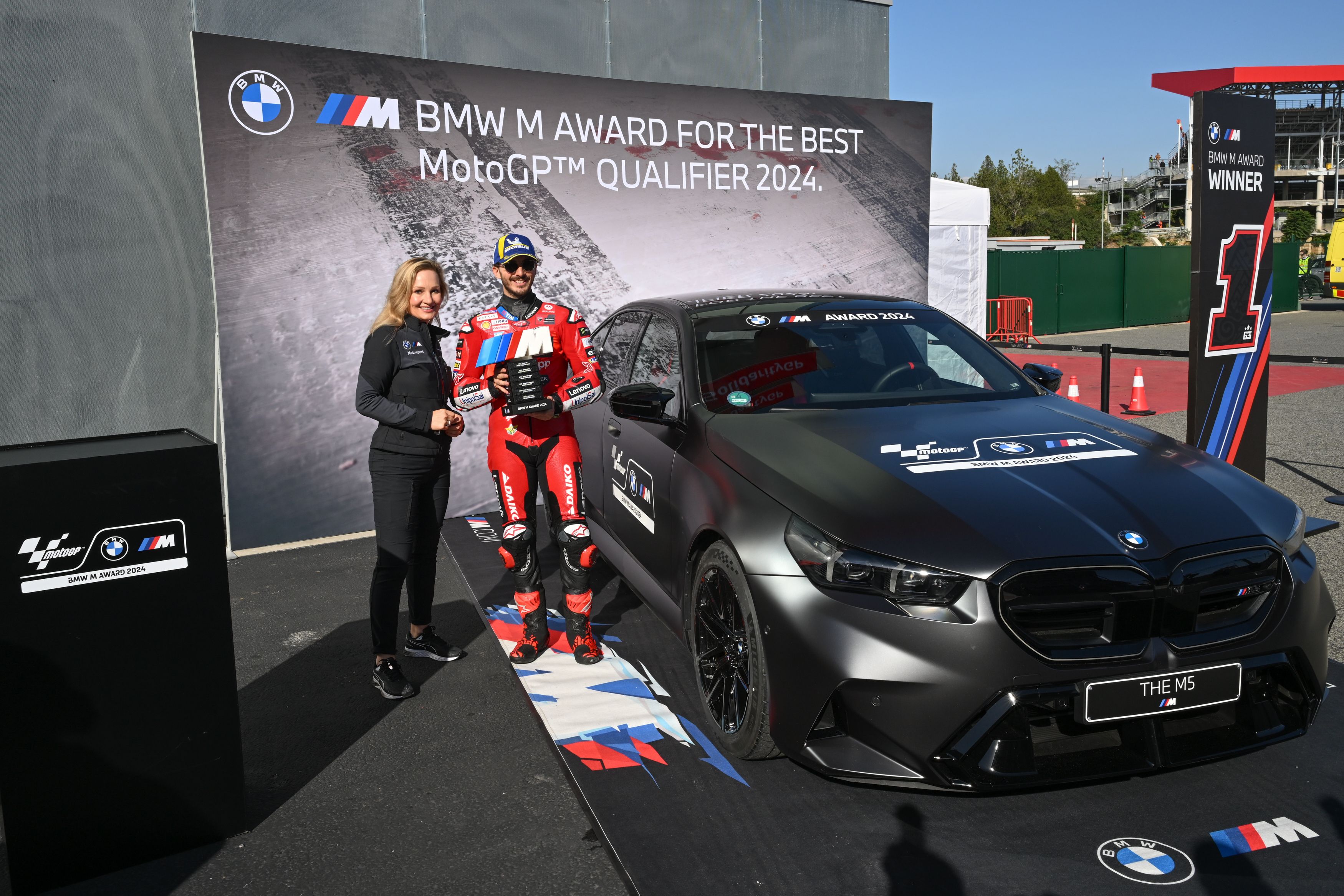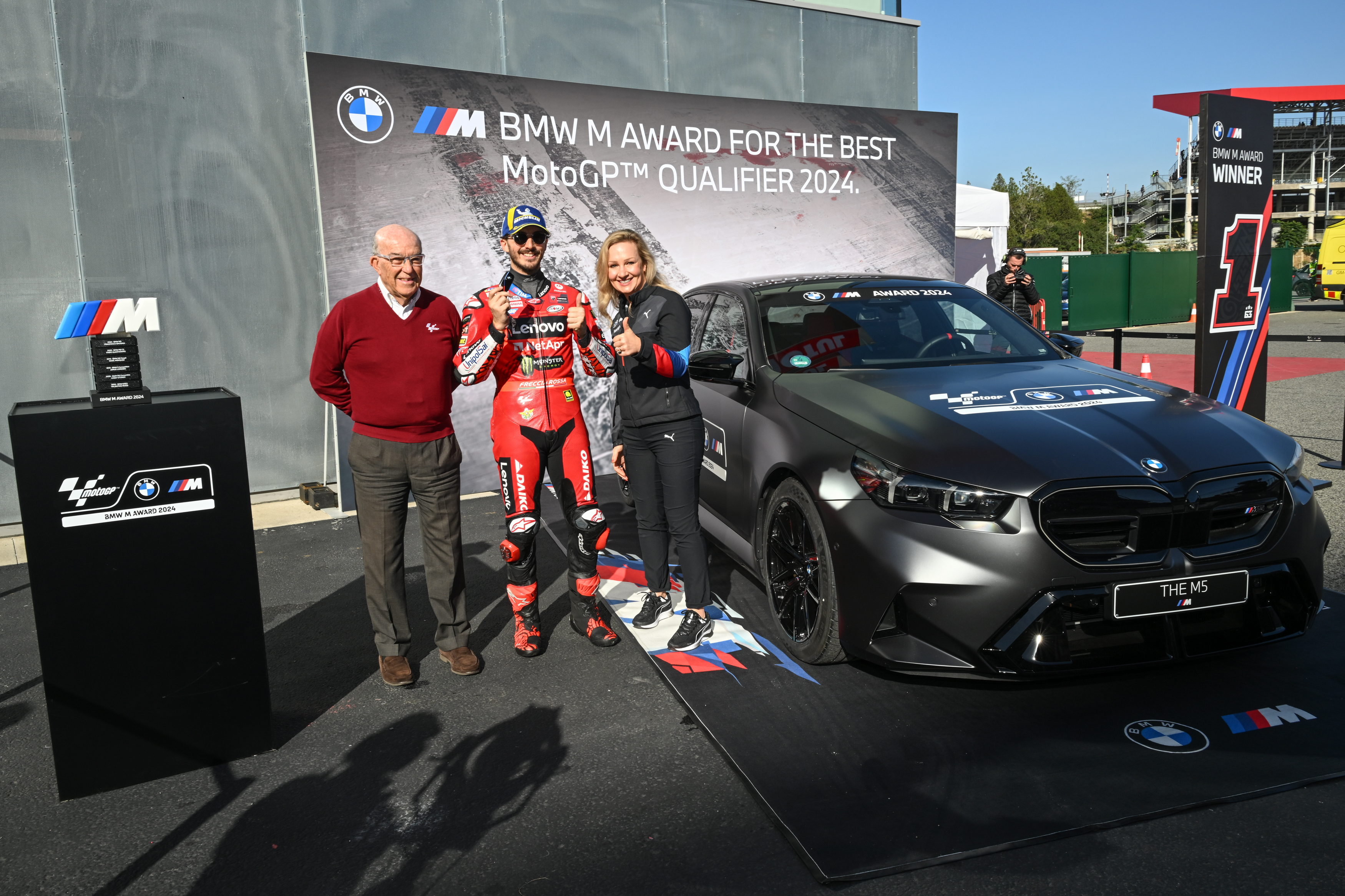 Barcelona (ESP), 16th November 2024. BMW M GmbH, Official Car of MotoGP™, BMW M Award 2024, MotoGP™, winner Francesco Bagnaia (ITA), winner's car BMW M5.