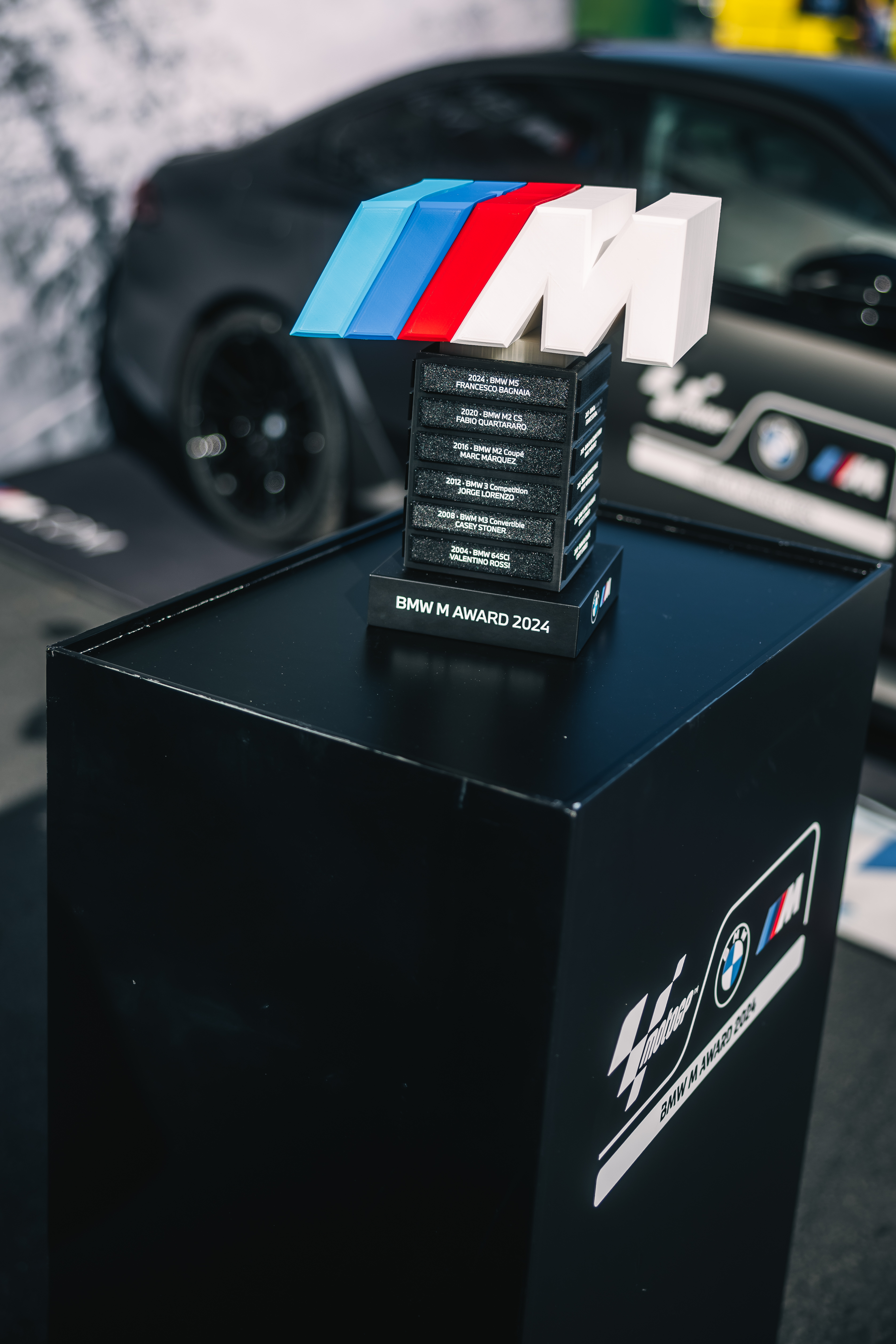 Barcelona (ESP), 16th November 2024. BMW M GmbH, Official Car of MotoGP™, BMW M Award 2024, MotoGP™, winner Francesco Bagnaia (ITA), winner's car BMW ...