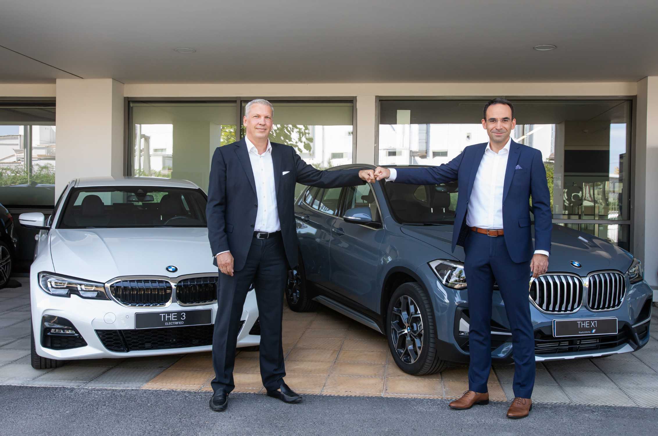 BMW Group Hellas & Siemens Greece partner to reinforce the corporate fleet of vehicles of the latter with state-of-the-art plug-in hybrids. From left, Mr. Johann Goettler, Chairman & CEO of Siemens S.A. in Greece and President & CEO of BMW Group Hellas, Mr. Andreas Sieben. (09/2020)