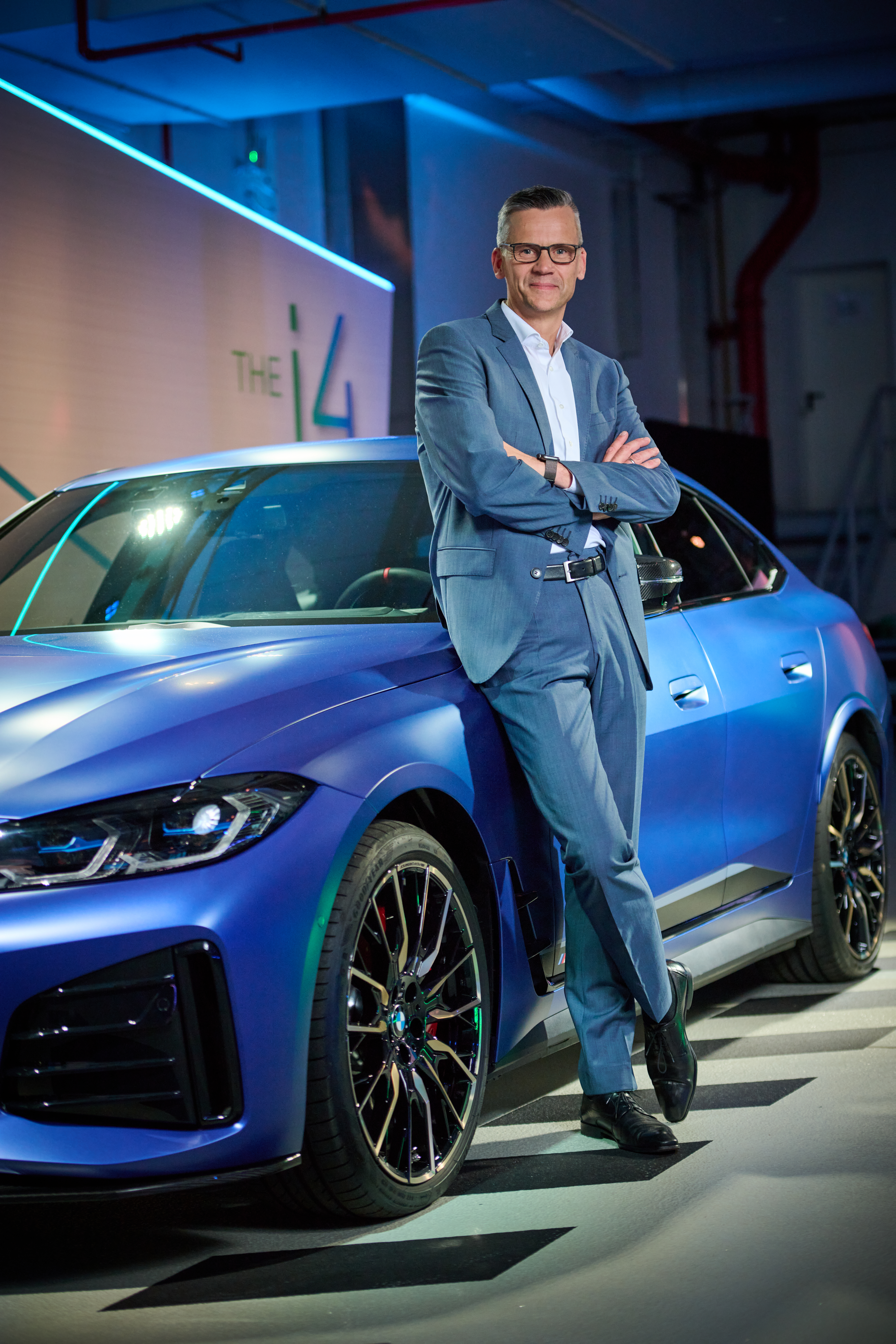 100 years anniversary BMW Plant Munich; Plant Manager Peter Weber with th BMW i4 (05/2022)
