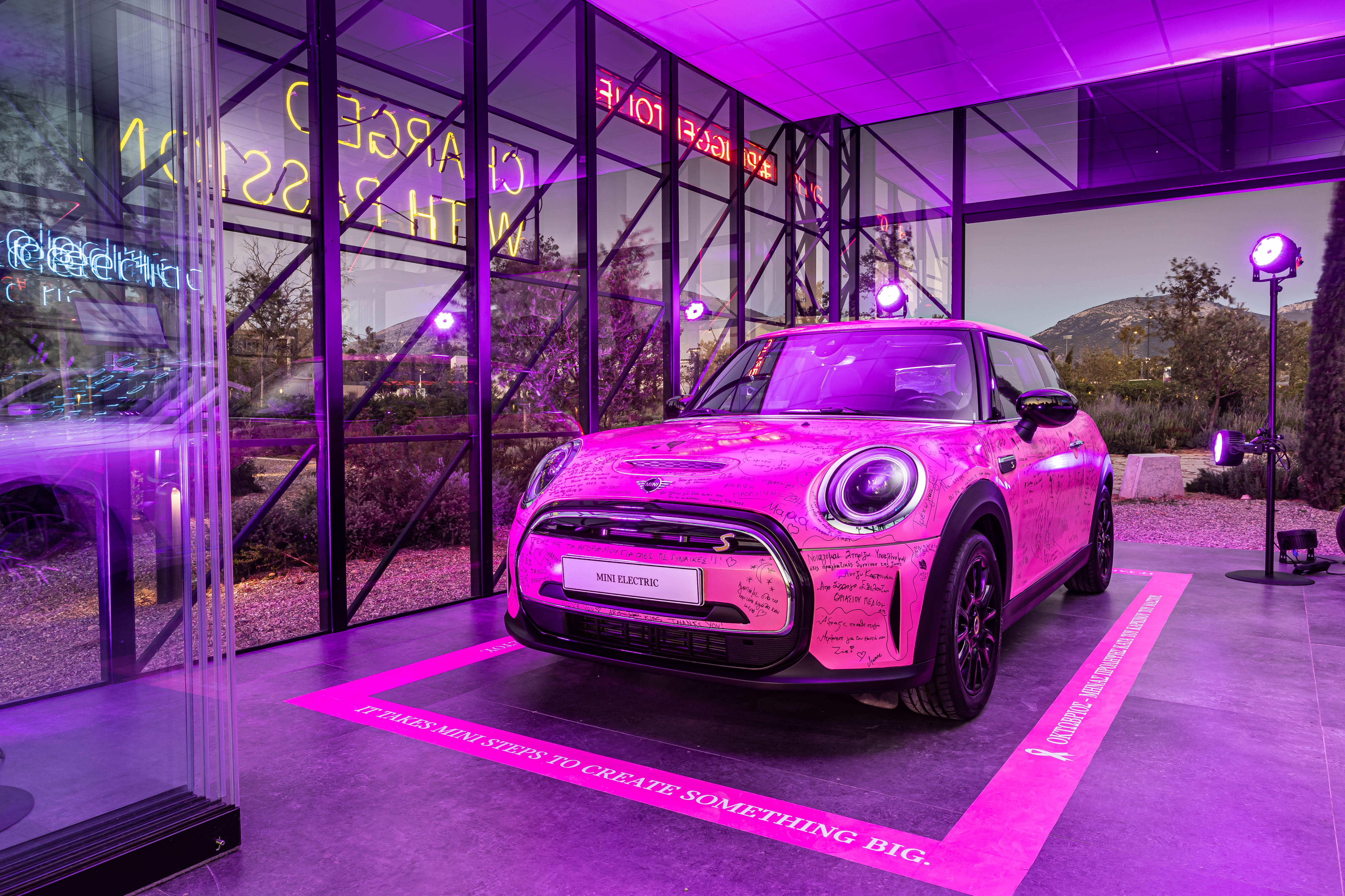 The MINI Electric in pink at Ellinikon Experience Park in Athens, Greece. (10/2022)