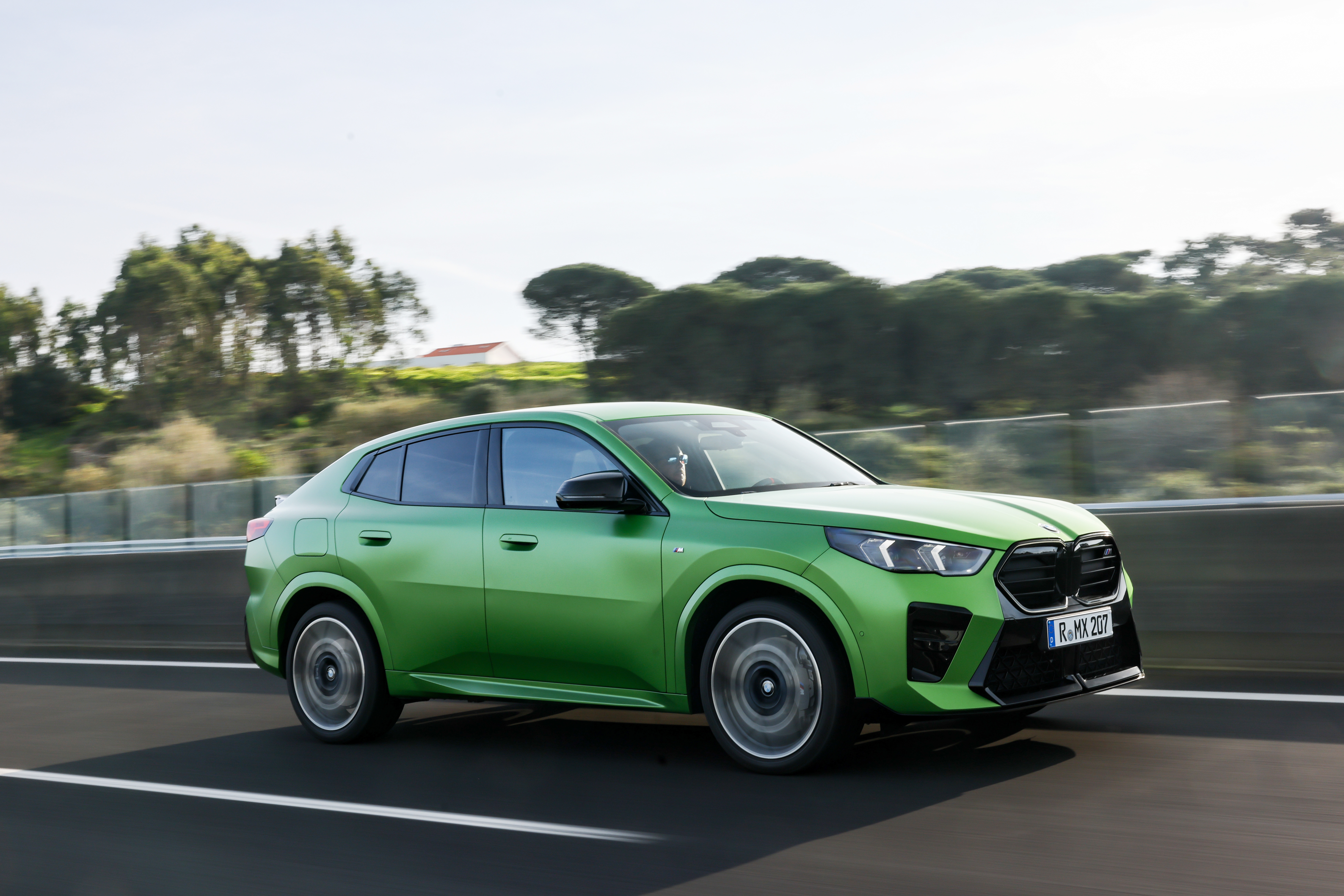 The new BMW X2 M35i xDrive, Frozen Tampa Bay Green - Driving. (02/2024)