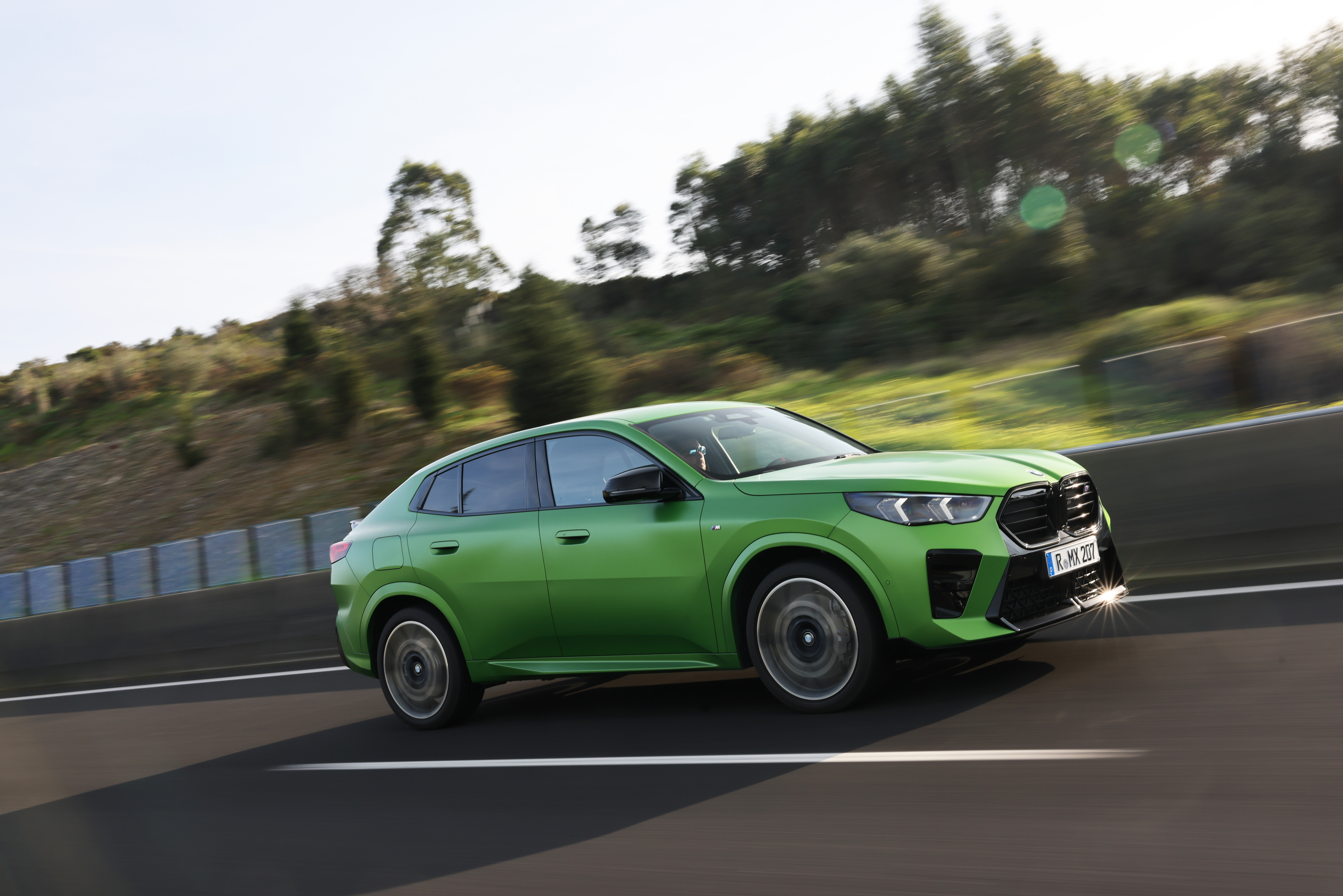 The new BMW X2 M35i xDrive, Frozen Tampa Bay Green - Driving. (02/2024)