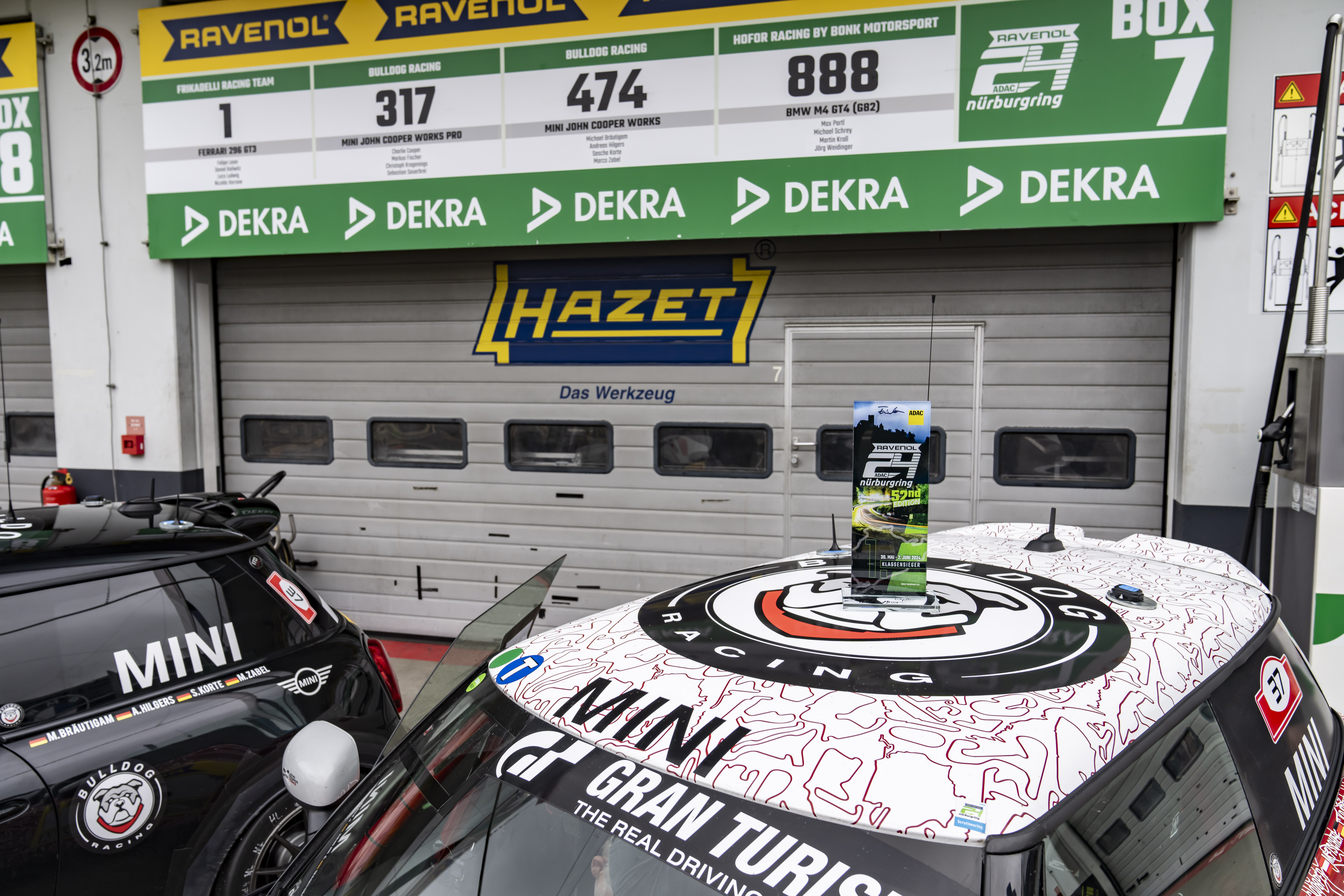MINI John Cooper Works and Bulldog Racing at the 24 hours race Nürburgring. Second Race Day 02.06.2024.(06/2024)