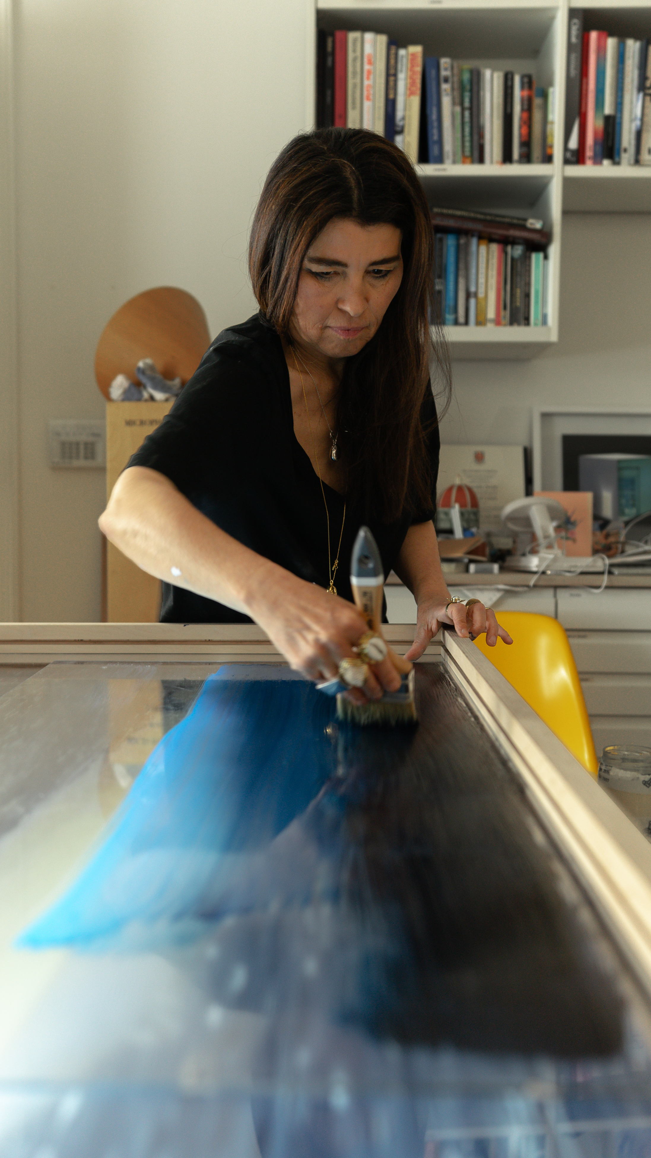 Artist Es Devlin working in her studio on SURFACING. Photo: Gary Yeh © Es Devlin / BMW AG (06/2024)