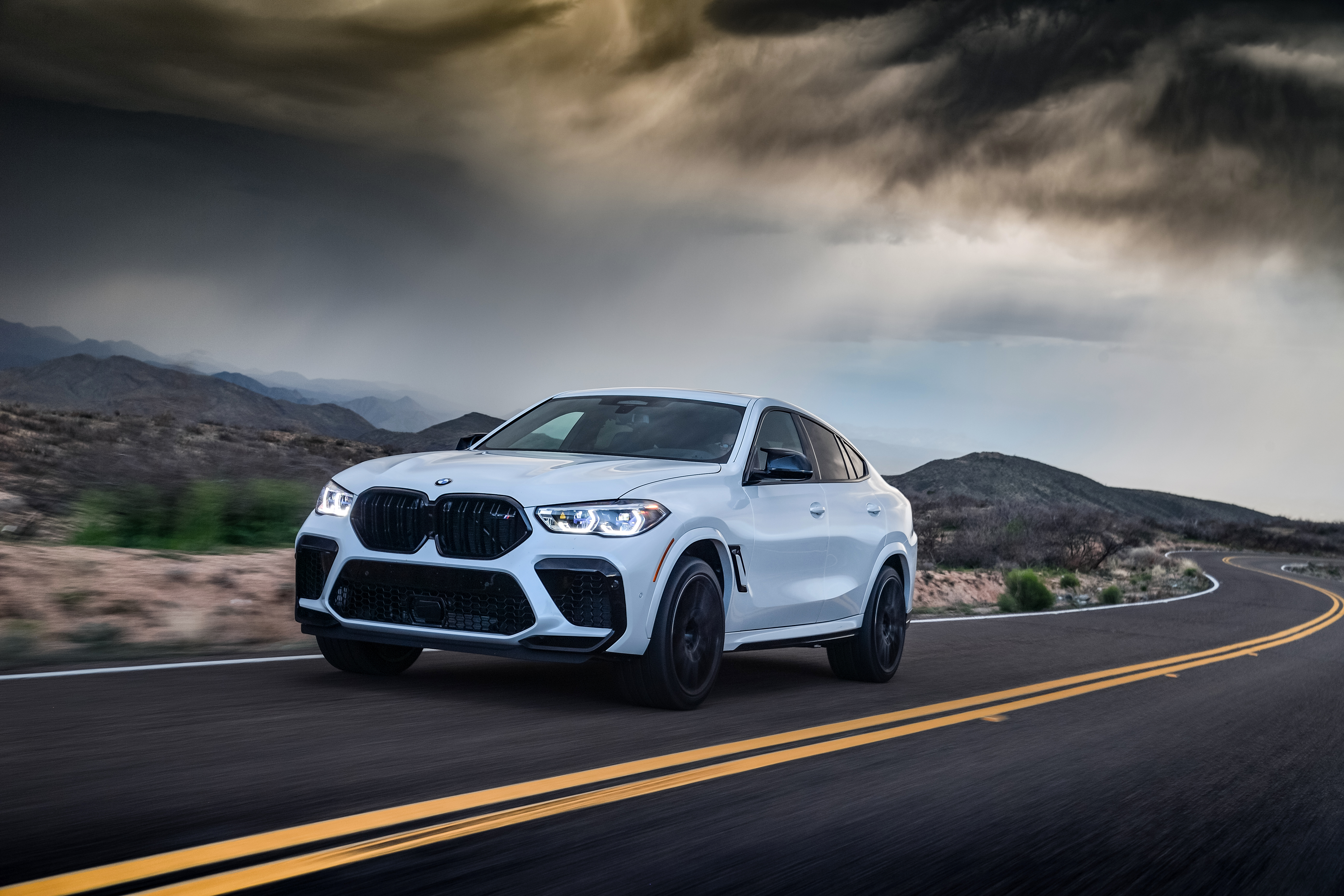 The all-new BMW X6 M Competition in colour Mineral White metallic and 21"/22" M Light Alloy Wheels Star Spoke Style 809 M Bicolor Mixed Tyres – Phoenix, Arizona (02/2020).