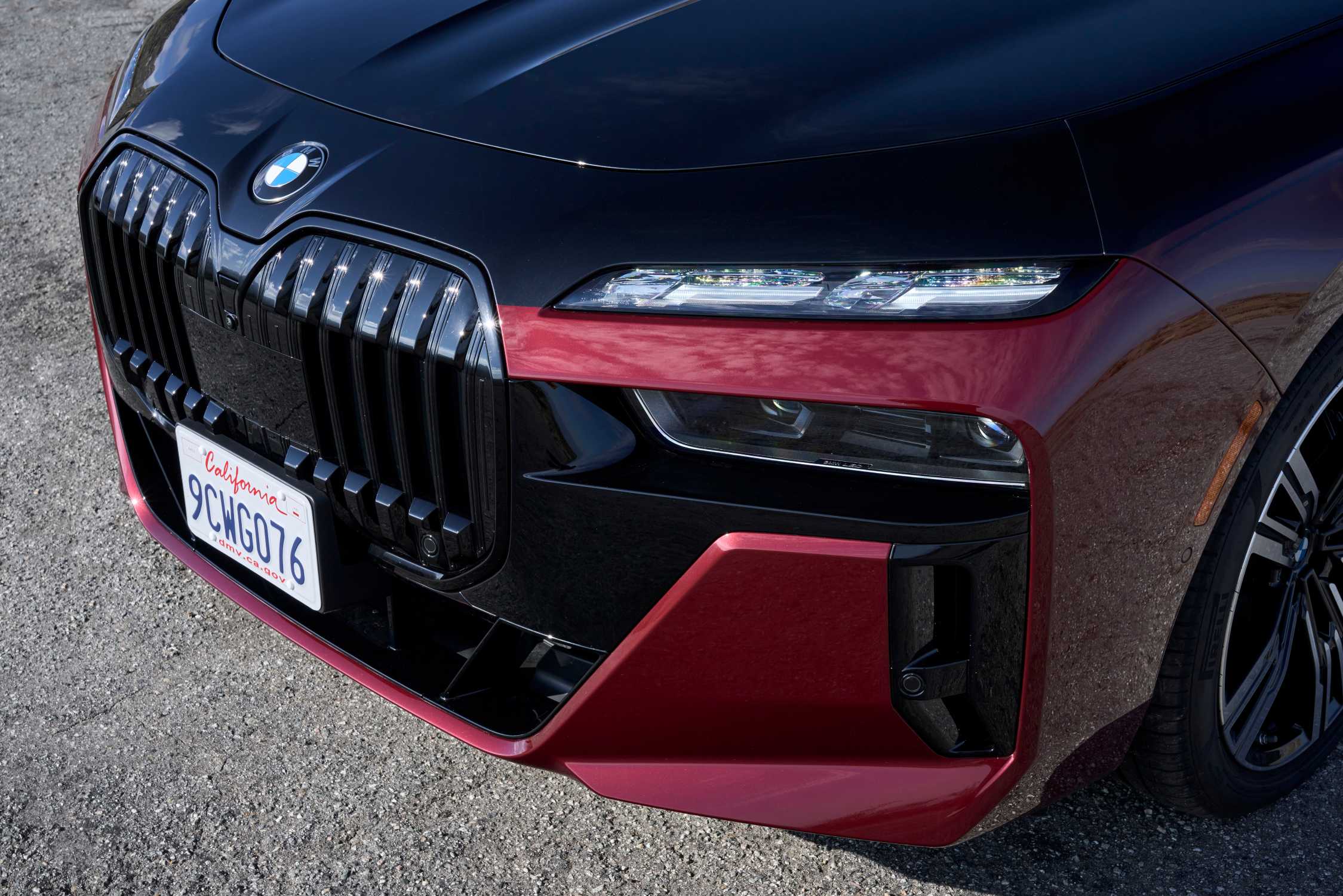 The new BMW 760i xDrive Aventurin Red Metallic Two-Tone On Location Palm Springs (10/2022).