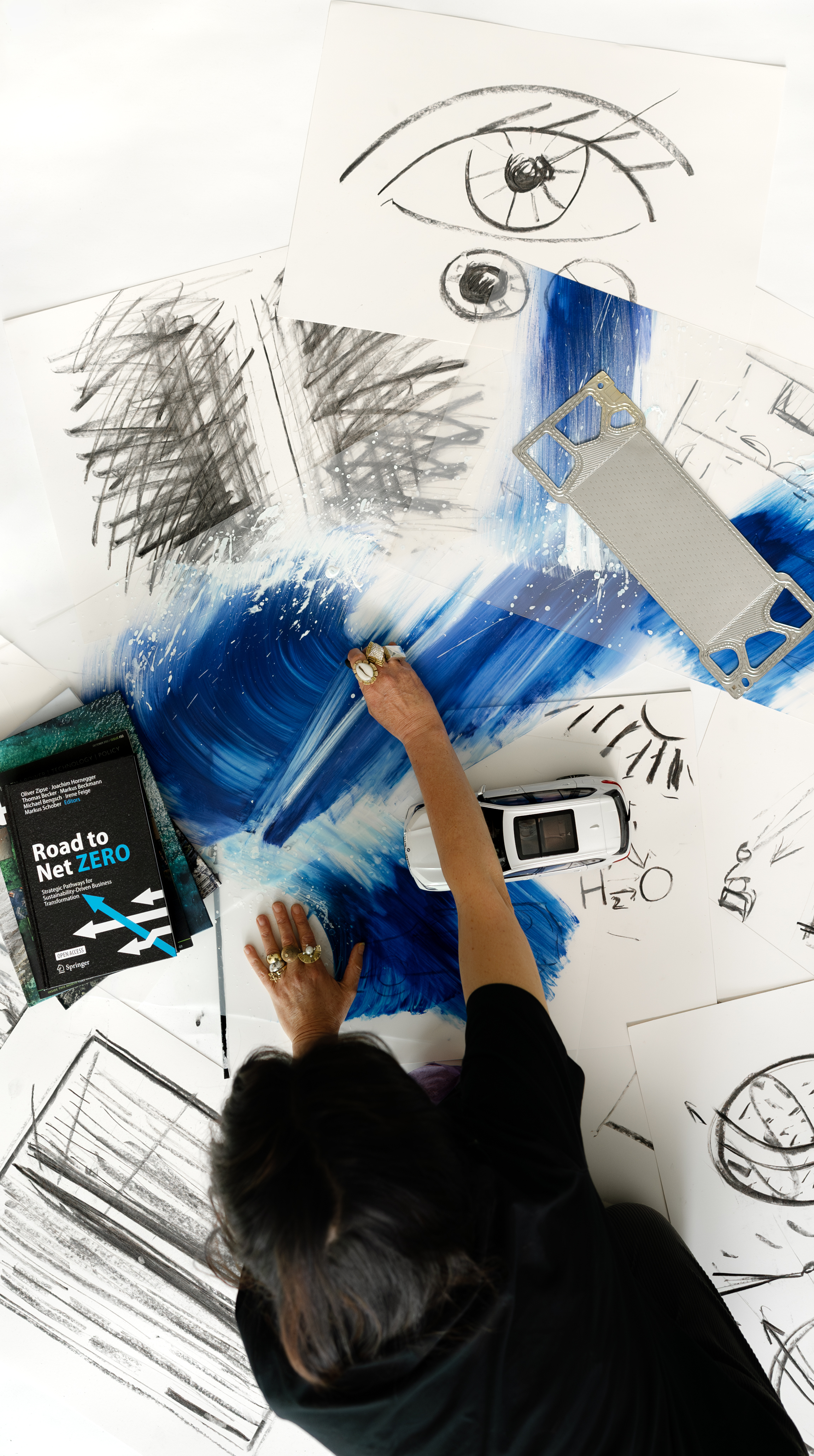 Artist Es Devlin working in her studio on SURFACING. Photo: Gary Yeh © Es Devlin / BMW AG (06/2024)