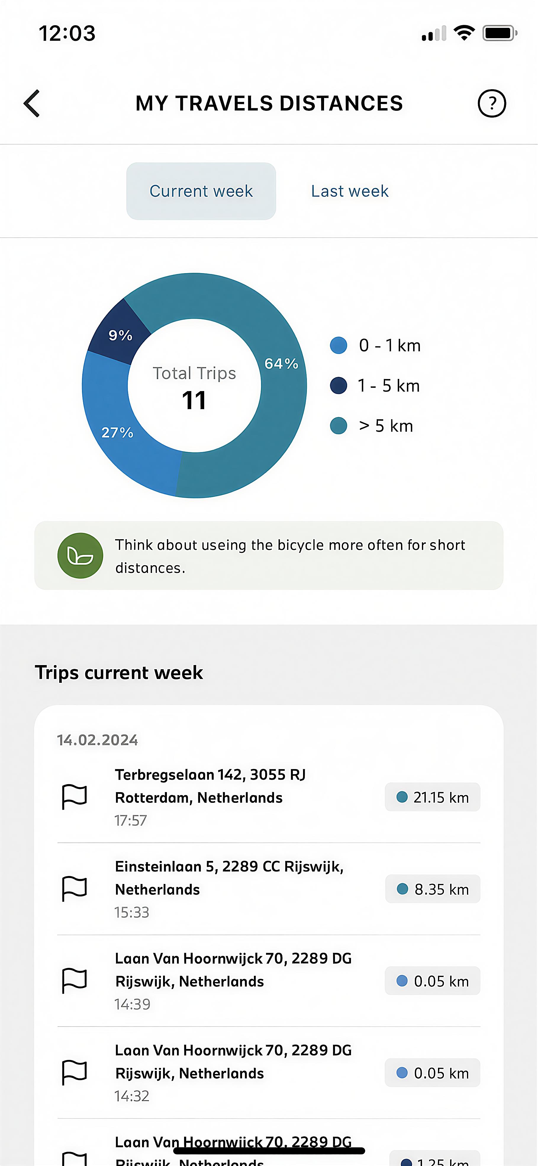 My Travels distances app screenshot (11/2025)