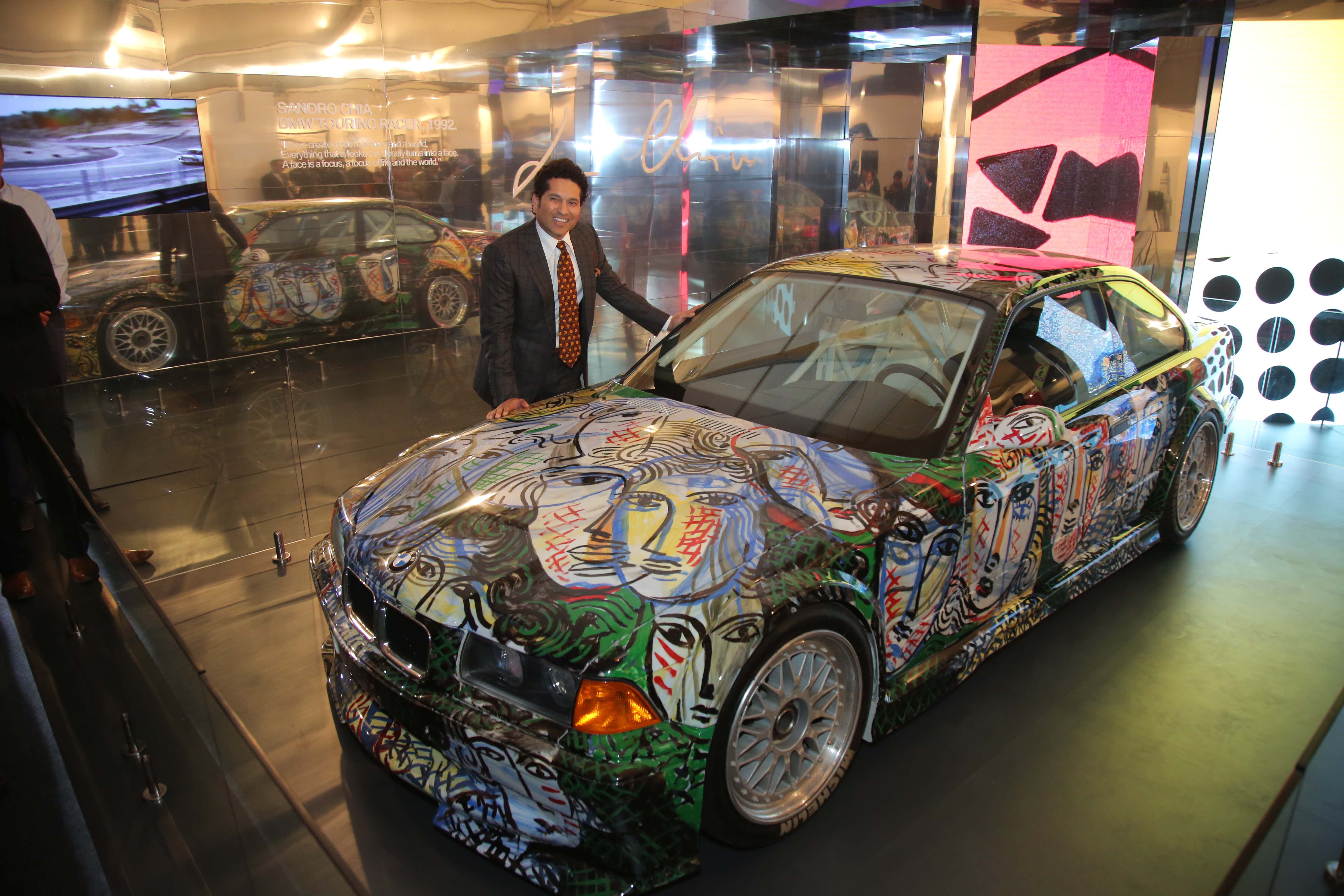 Master Blaster Sachin Tendulkar with the 13th BMW Art car by Sandro Chia at the India Art Fair 2017 (03/2022)