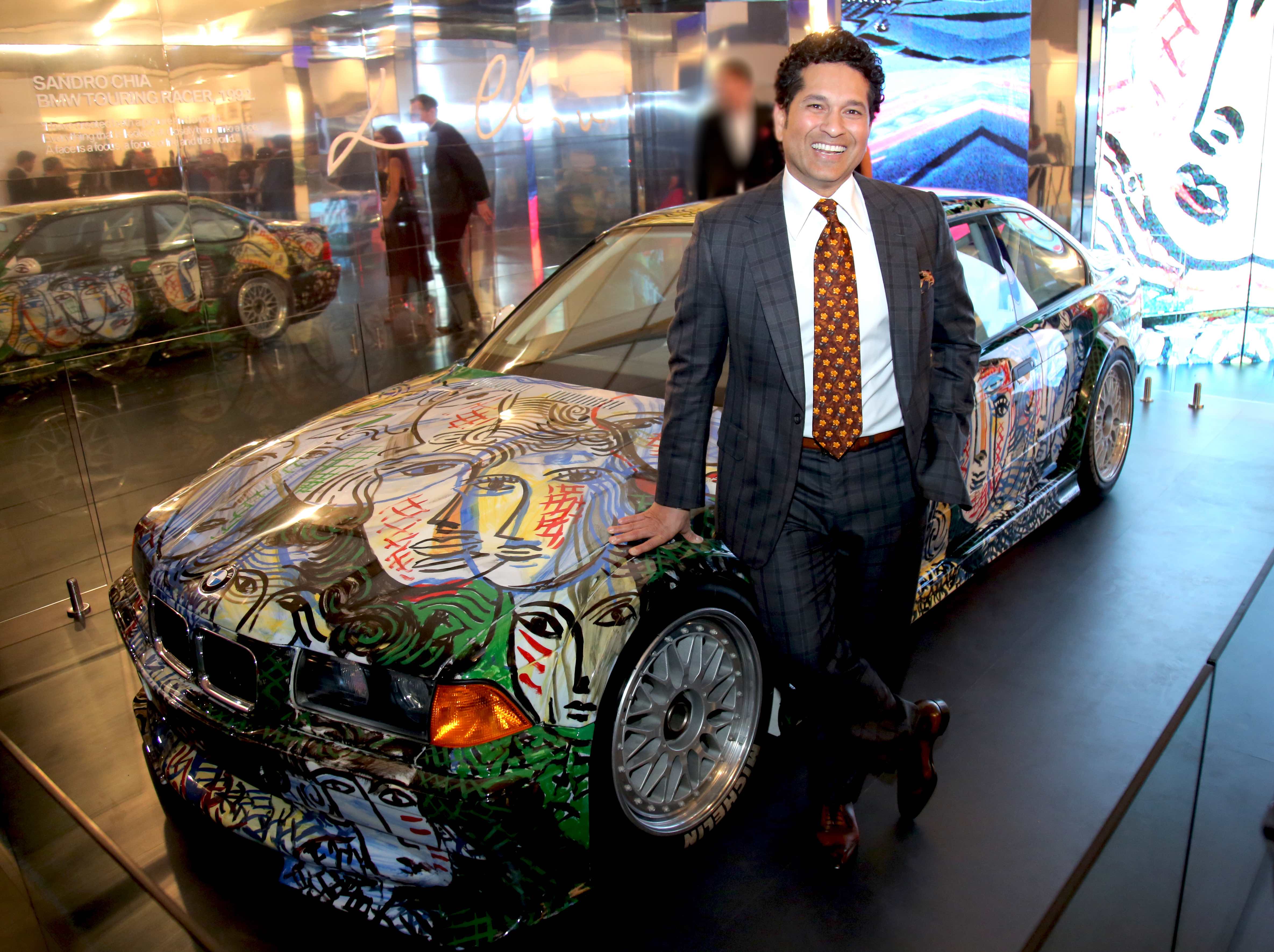 Master Blaster Sachin Tendulkar with the 13th BMW Art car by Sandro Chia at the India Art Fair 2017 (03/2022)