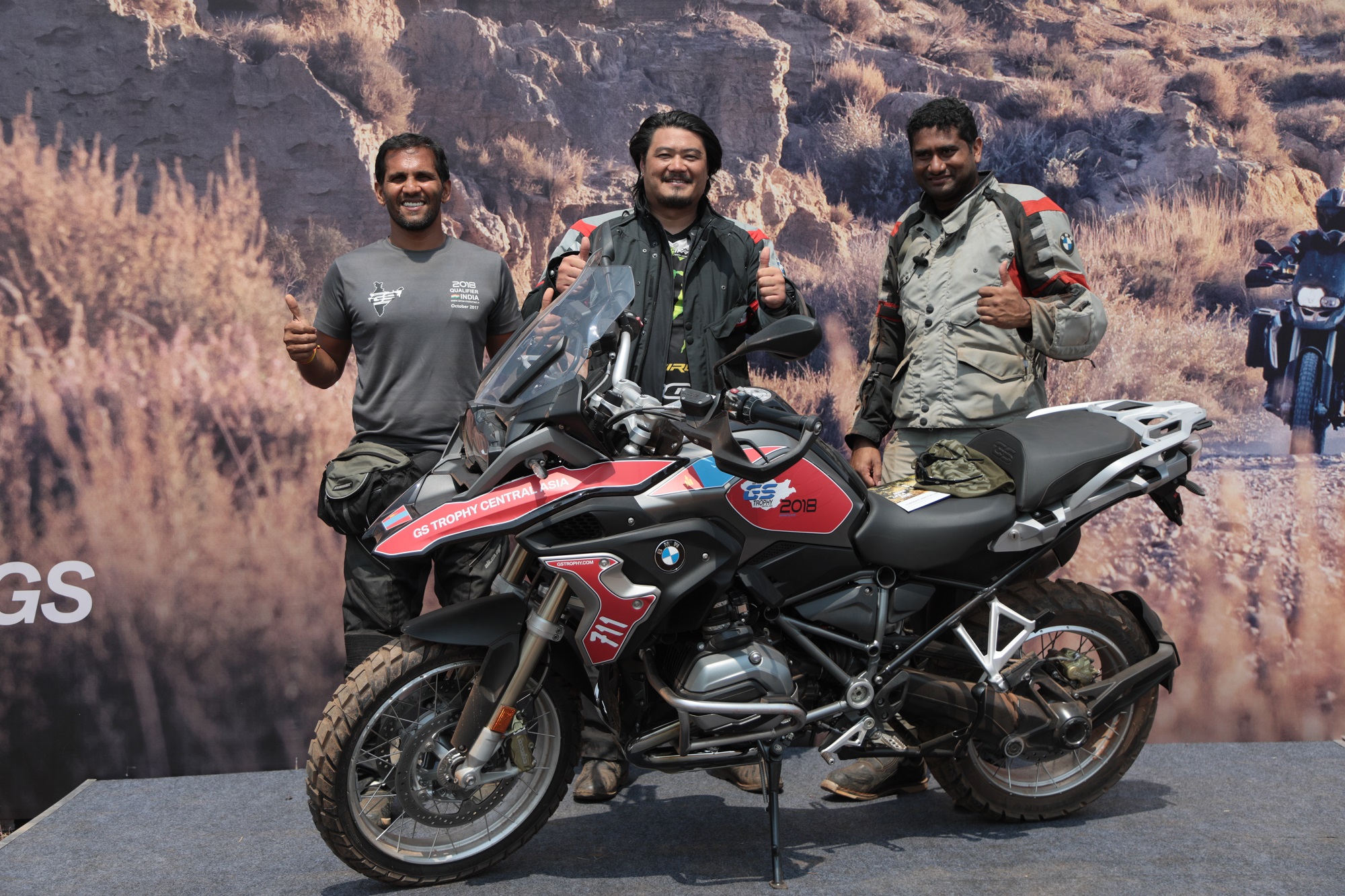 Winners of the BMW Motorrad International GS Trophy India qualifier Mr. Sanket Shanbhag, Mr. Suprej Venkat and Mr. Winston Lee (03/2022)