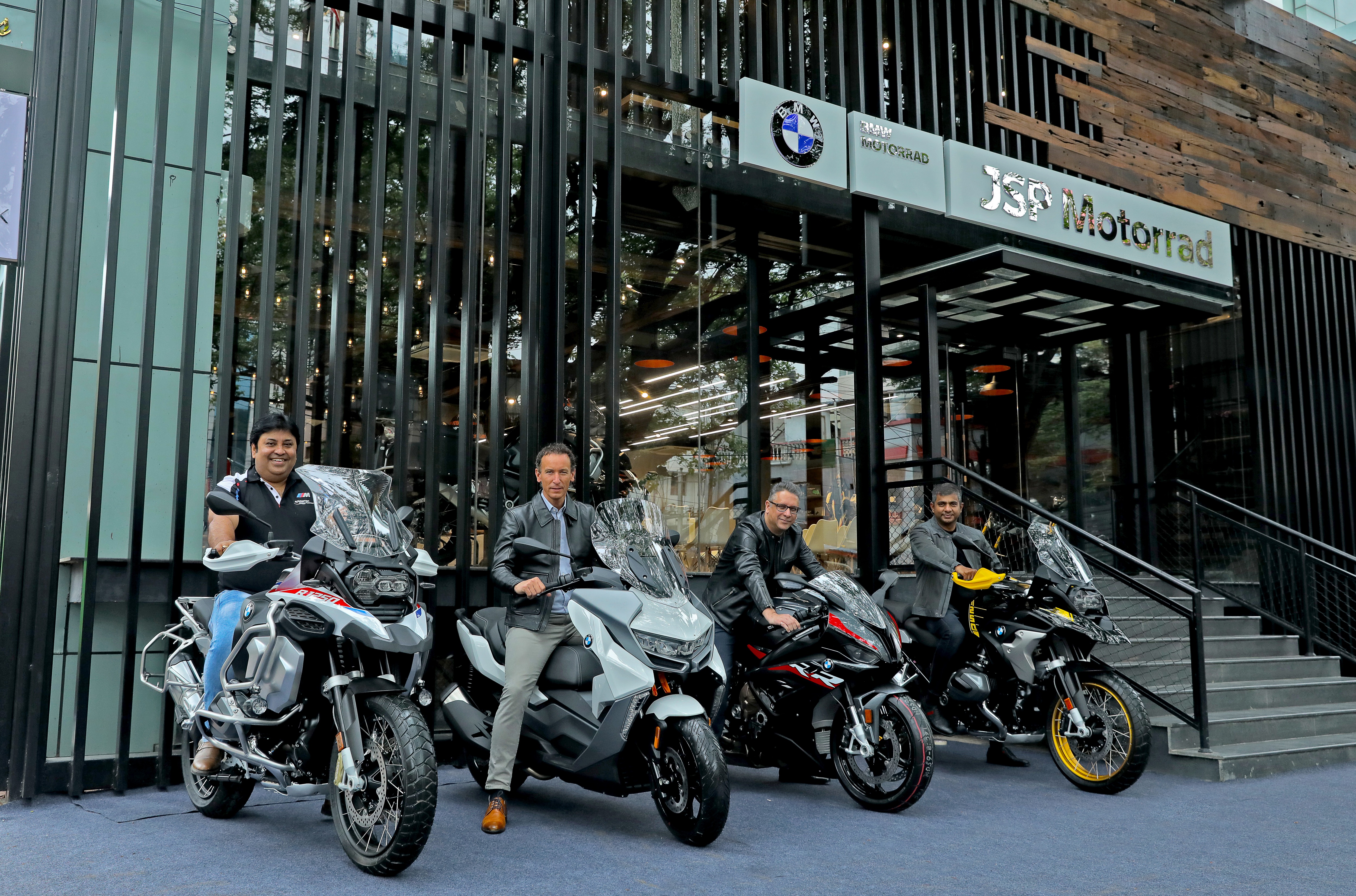(L – R) Mr. Shivapada Ray, Head – BMW Motorrad India, Mr. Markus Mueller-Zambre, Head of Region Asia, China, Pacific & Africa at BMW Motorrad, Mr. Vikram Pawah, President - BMW Group India and Mr. Sudharsan Ponraj, Dealer Principal – JSP Motorrad (05/2022)