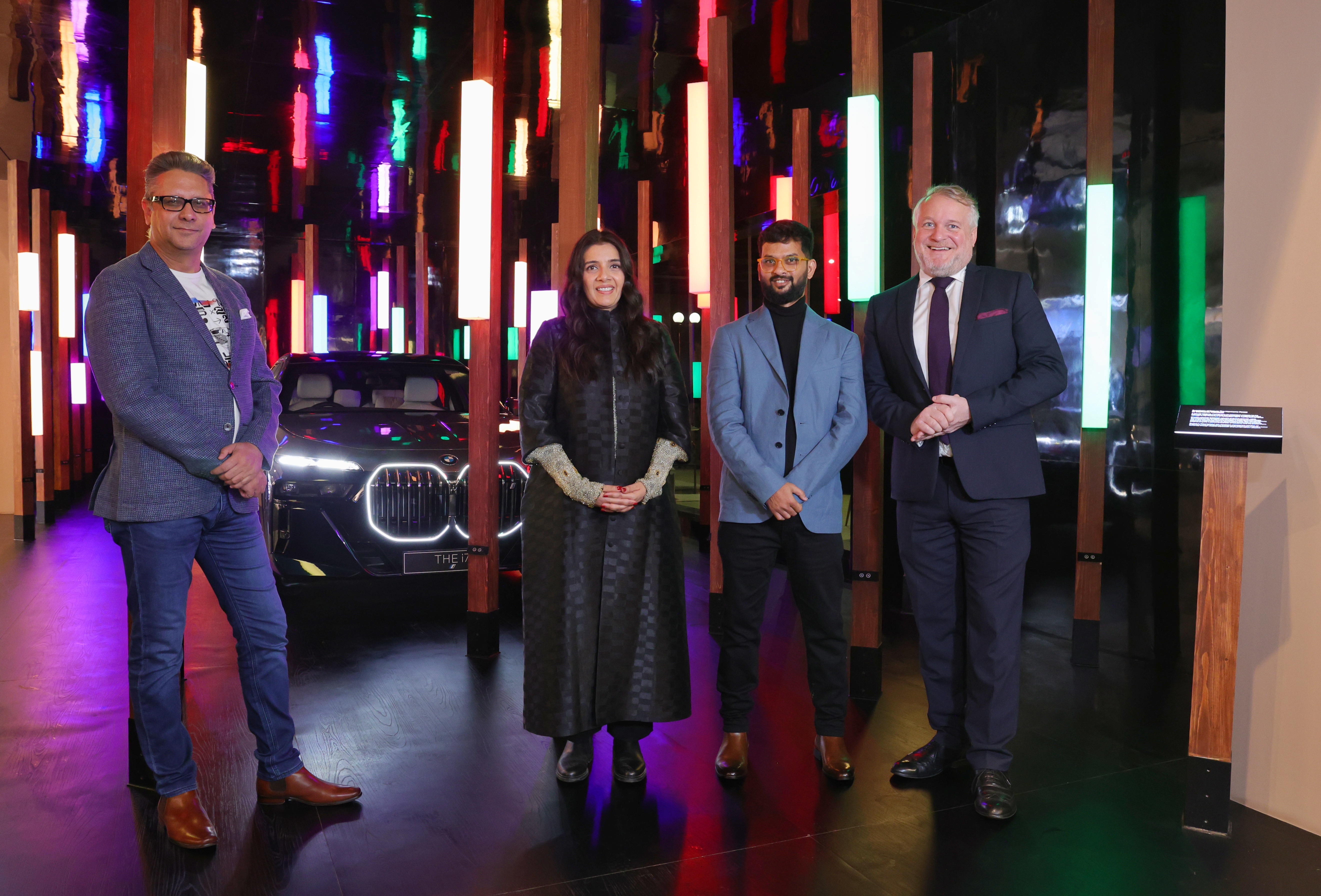 (L-R) Mr. Vikram Pawah, President, BMW Group India, Ms. Jaya Asokan, Director, India Art Fair, Mr. Sashikanth Thavudoz, winner of the third edition of ‘The Future is Born of Art’ commission and Prof. Dr. Thomas Girst, Global Head of Cultural Engagement, BMW Group (02/2024)