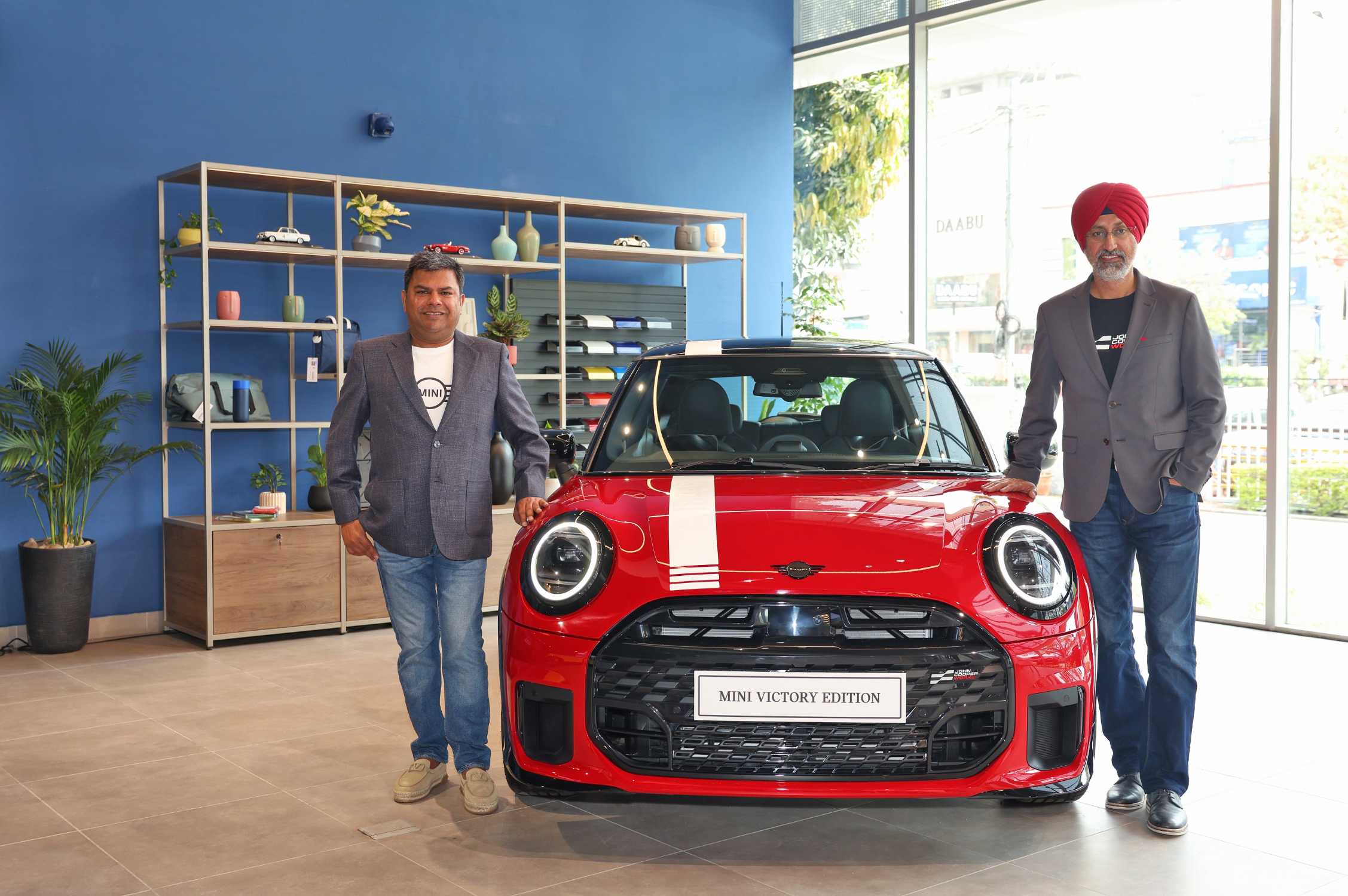 (L – R) Mr. Puneet Sanghi, Dealer Principal, Sanghi Classic and Mr. Hardeep Singh Brar, President and CEO, BMW Group India with the new MINI Cooper S Victory Edition (03/2026)