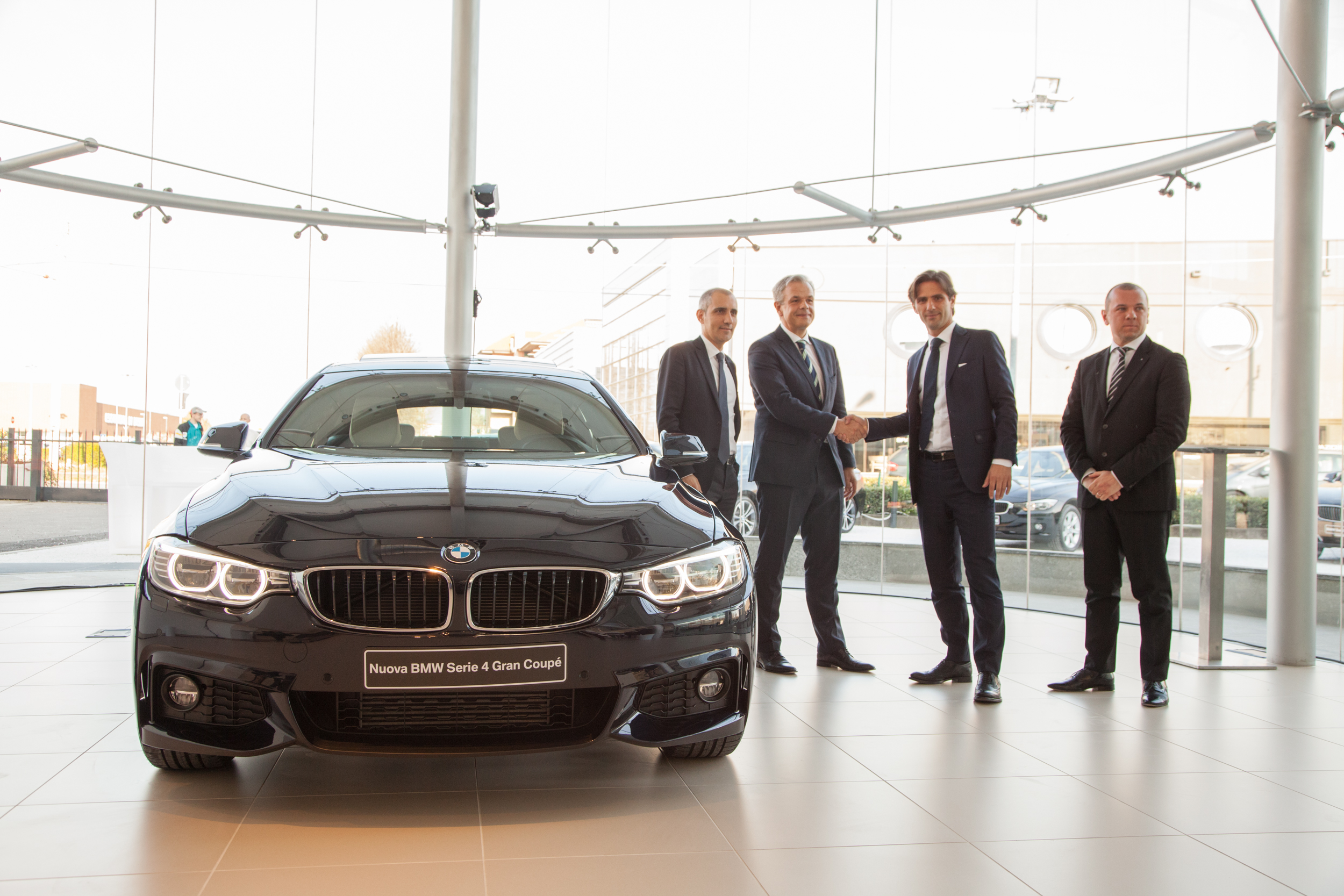 Desio, 28 marzo 2014. Conferenza stampa per l'inaugurazione della nuova Concessionaria BMW AutoVanti Brianza. Accanto alla Nuova BMW Serie 4 Gran Coupé, Andrea Mantellini (Amministratore Delegato AutoVanti), Jens Werner (Presidente e CEO Penske Automotive Europe), Massimo Senatore (Direttore Vendite BMW Italia) e Simone Bulgarelli (Direttore Generale AutoVanti Brianza) (03/2014).