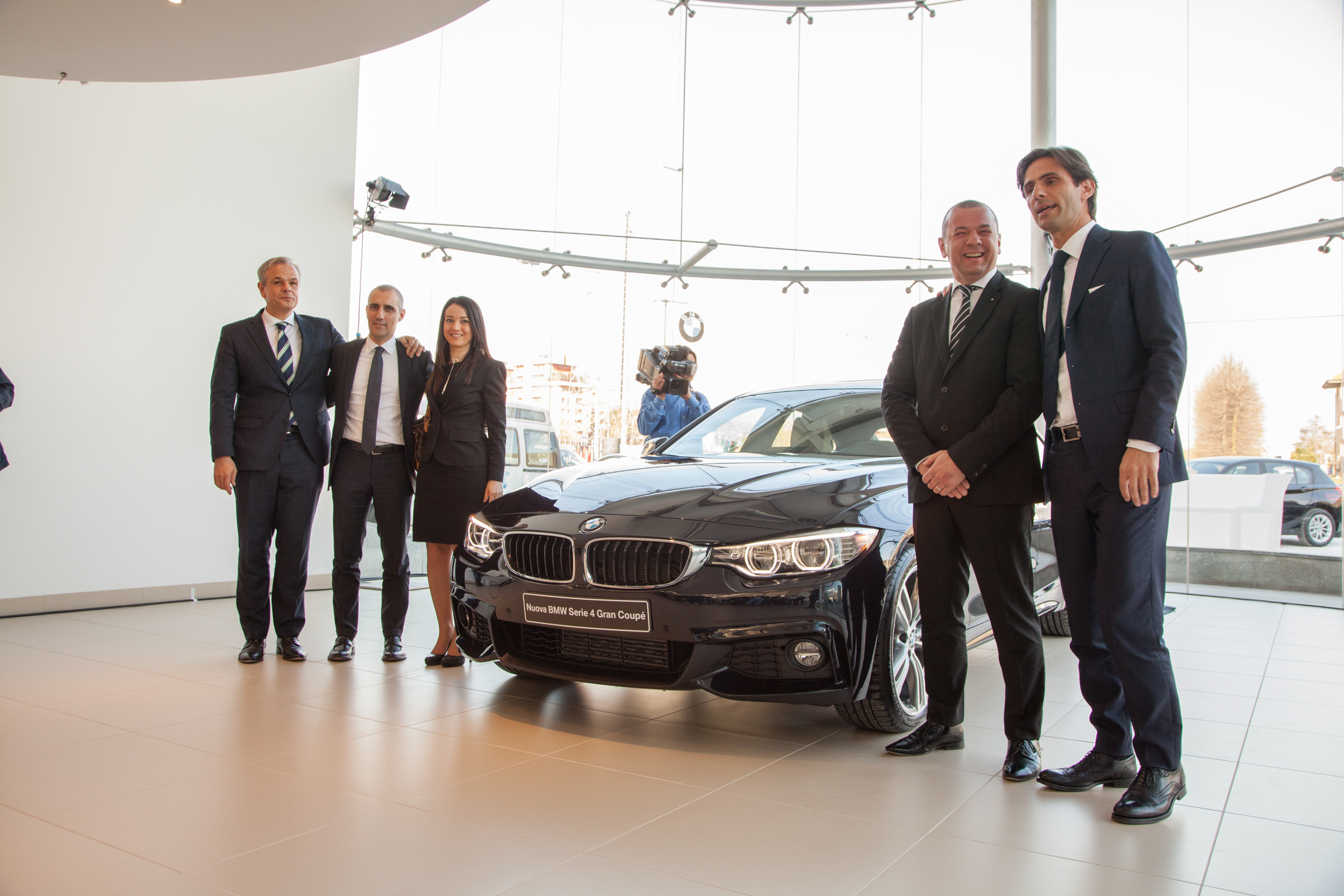 Desio, 28 marzo 2014. Conferenza stampa per l'inaugurazione della nuova Concessionaria BMW AutoVanti Brianza. Accanto alla Nuova BMW Serie 4 Gran Coupé, da sinistra, Jens Werner (Presidente e CEO Penske Automotive Europe), Andrea Mantellini (Amministratore Delegato AutoVanti), Elena Alberti (Direttore Finanziario AutoVanti), Simone Bulgarelli (Direttore Generale AutoVanti Brianza) e Massimo Senatore (Direttore Vendite BMW Italia) (03/2014).