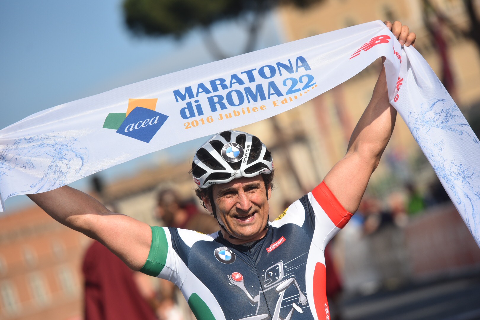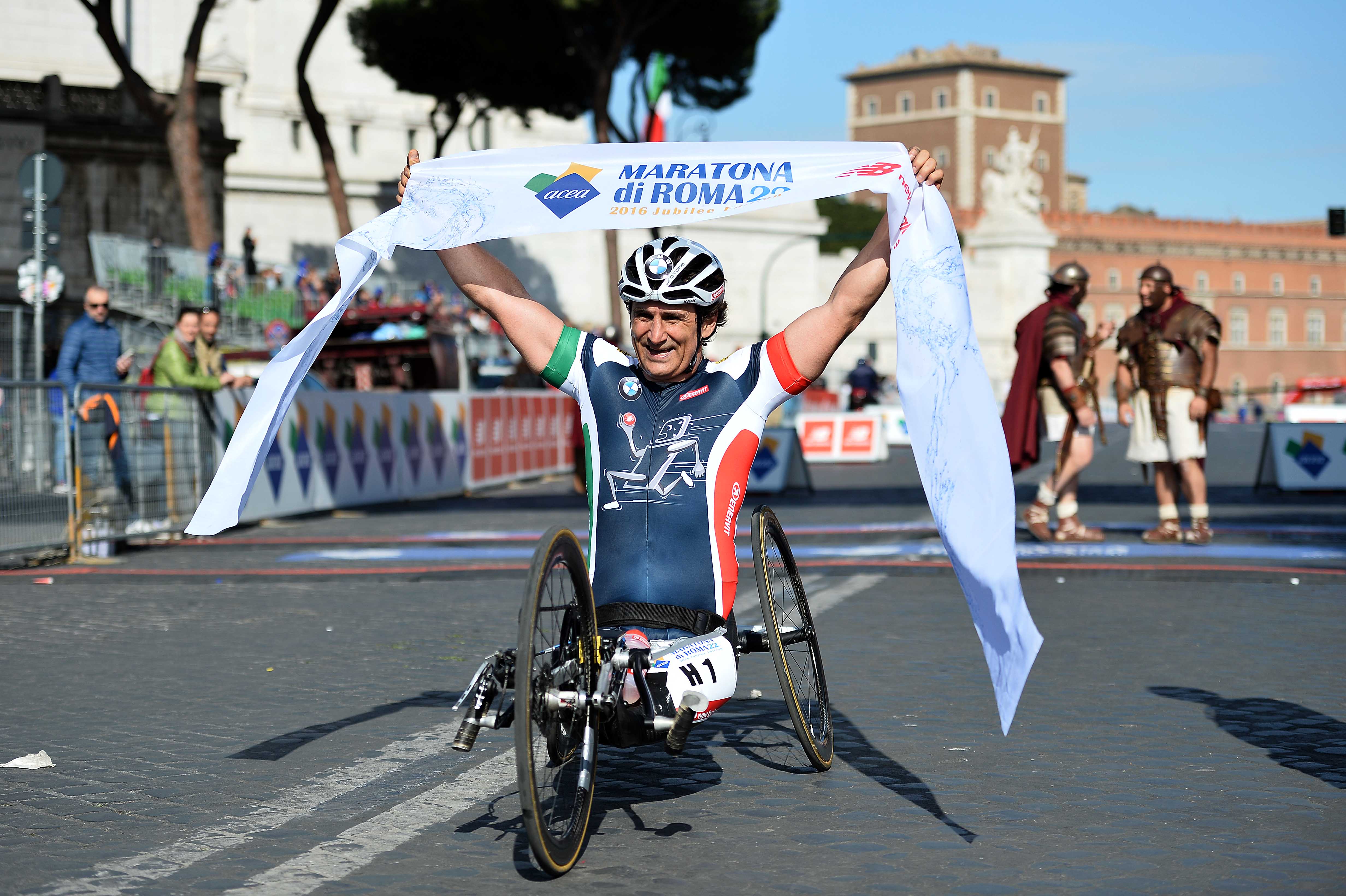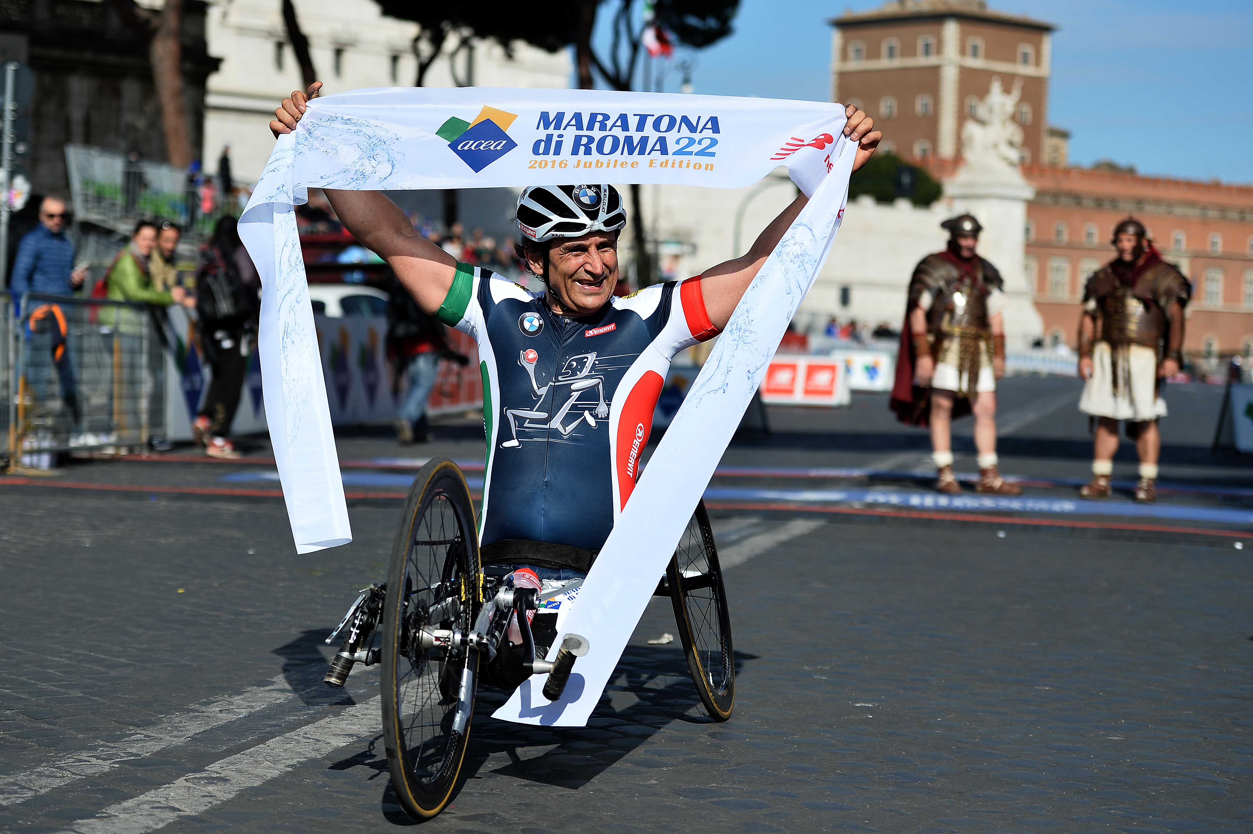 Rome (IT), 10th April 2016. BMW Motorsport works driver, BMW Brand Ambassador Alessandro Zanardi (IT), Para-Cycling, 2016 Rome Marathon.