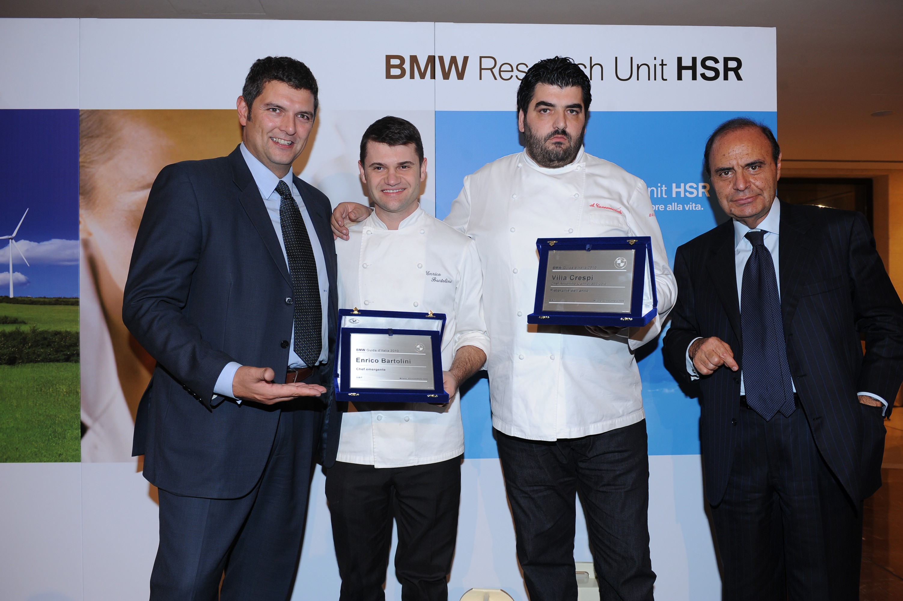 The awards ceremony. Left to right: Andrea Castronovo, Enrico Bartolini, Antonino Cannavacciuolo, and Bruno Vespa (11/2009)