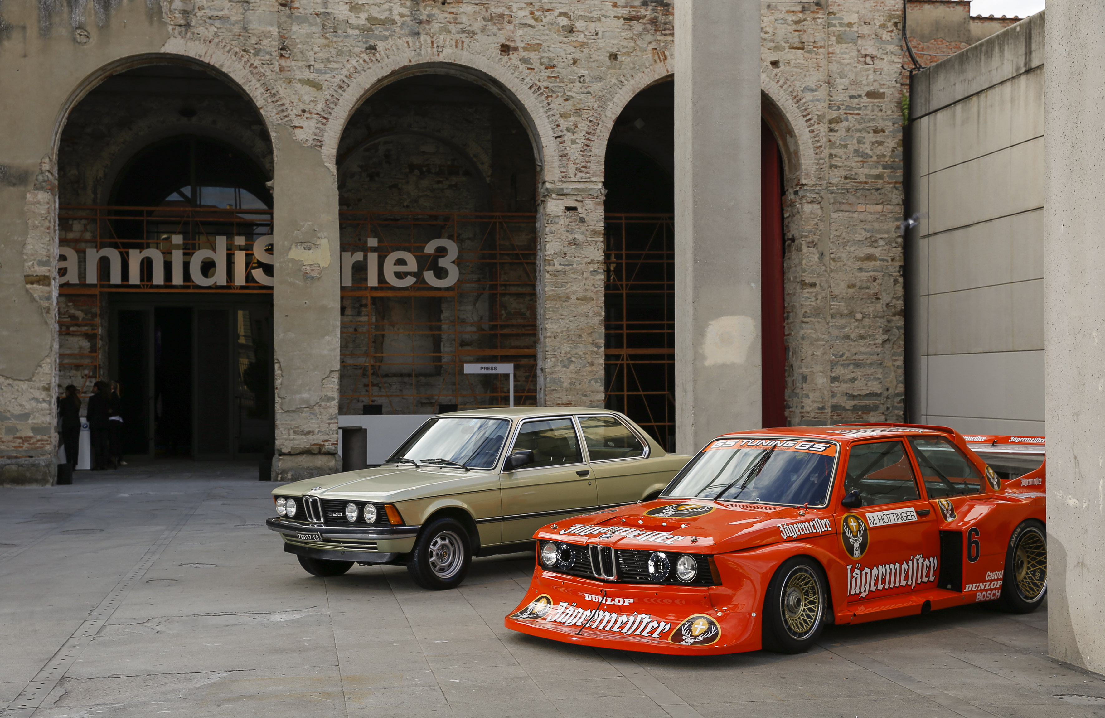 Firenze, 30 settembre 2015. La Stazione Leopolda ha ospitato la festa per i quaranta anni di BMW Serie 3. La BMW 320 Turbo del 1980 e la BMW 320 Turbo Group 5 Jägermeister (E21) del 1979 (10/2015).