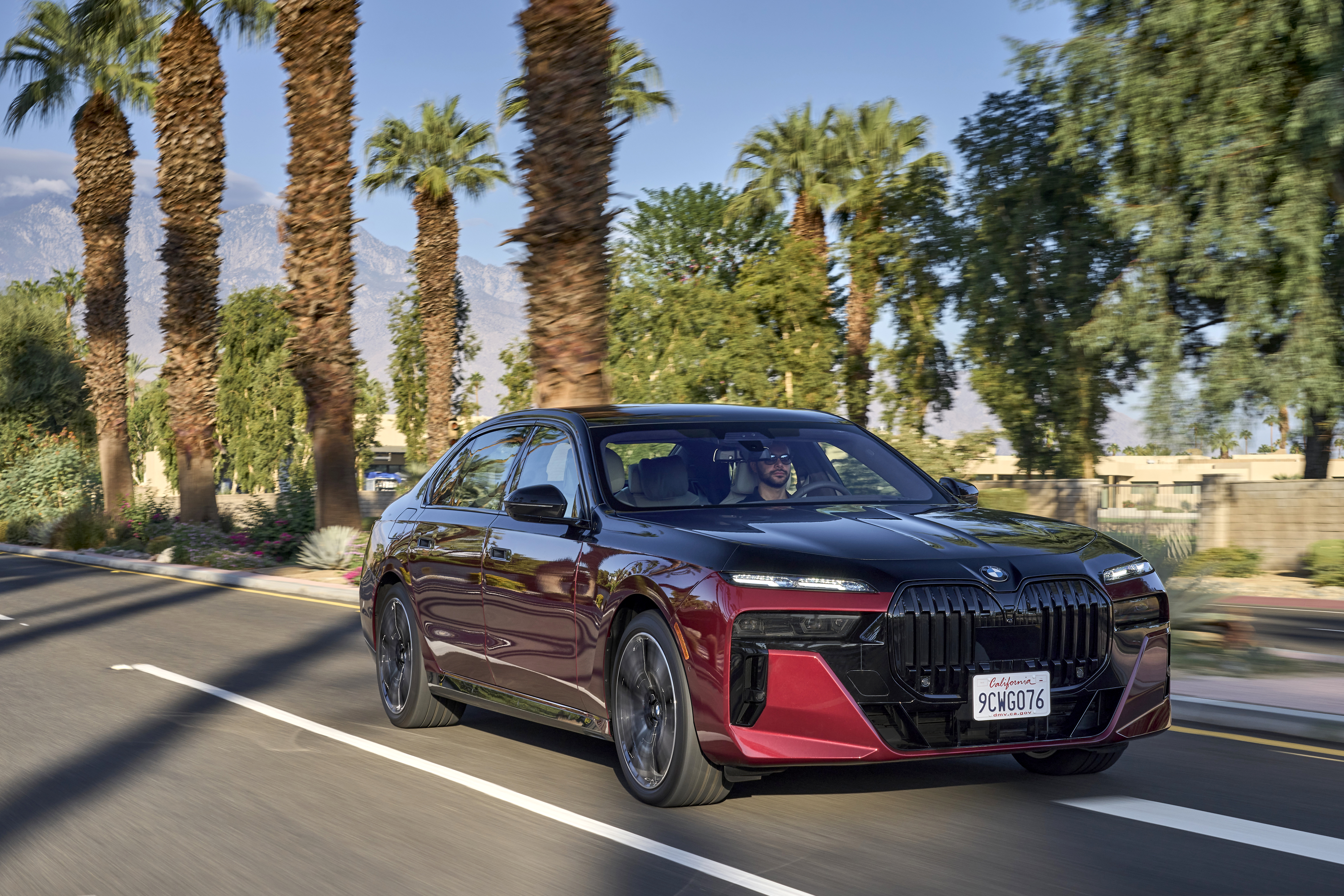 The new BMW 760i xDrive Aventurin Red Metallic Two-Tone On Location Palm Springs (10/2022).
