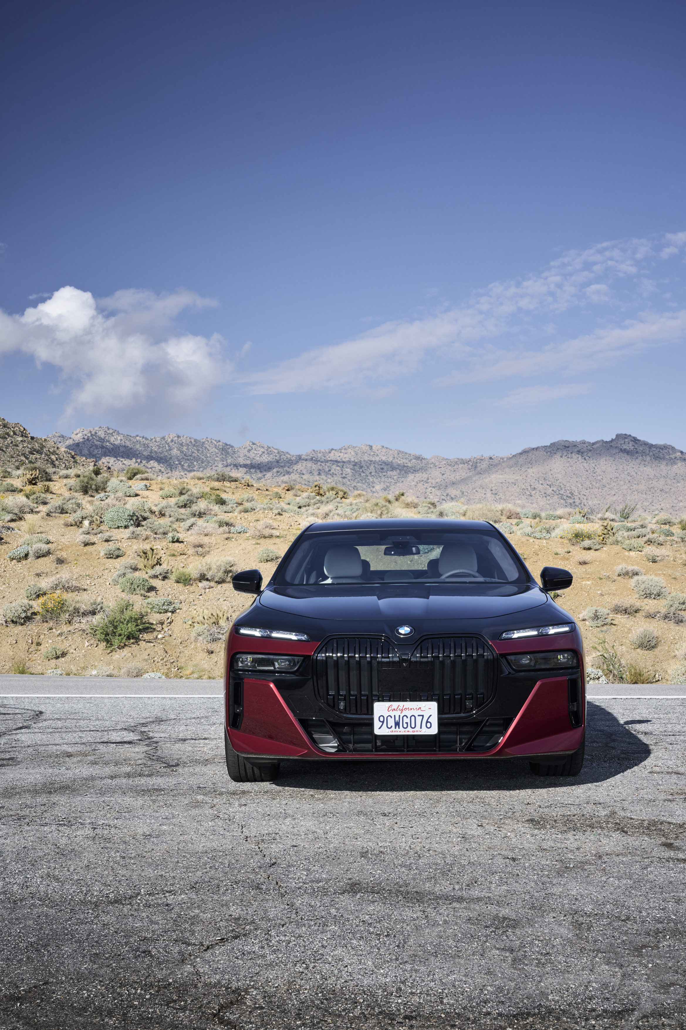 The new BMW 760i xDrive Aventurin Red Metallic Two-Tone On Location Palm Springs (10/2022).
